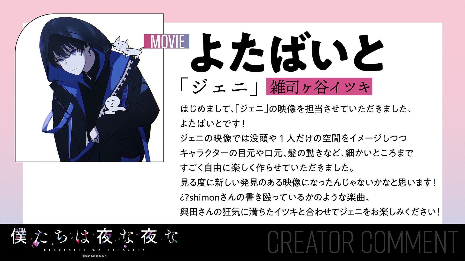 ボカロP×歌い手×声優「僕たちは夜な夜な」第3弾楽曲『ジェニ』のMV公開! 今後のコラボ発表も‼