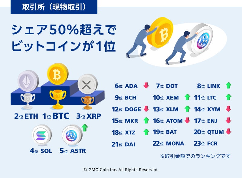 そのため、販売所、取引所(現物取引)ともにビットコイン(BTC)とイーサリアム(ETH)の取引が目立ったランキングとなりました。