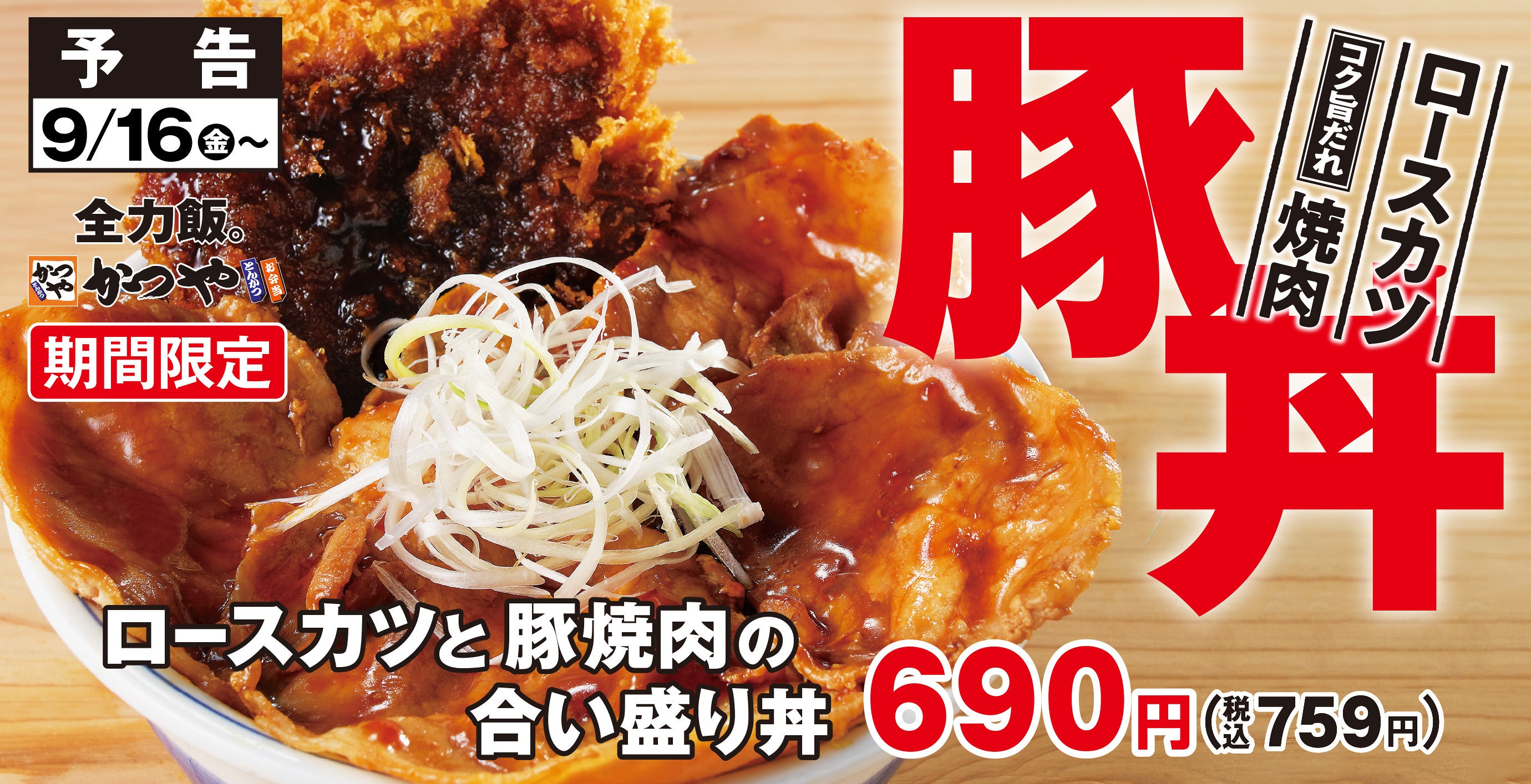 アークランドサービスホールディングス株式会社の⼦会社、とんかつ専⾨店「かつや」を展開している株式会社かつや(本社:東京都千代⽥区/代表:⼤内 勇⼀)は、国内「かつや」にて、期間限定メニュー「ロースカツと豚焼肉の合い盛り丼」を2022年9月16日(金)より期間限定で販売いたします。