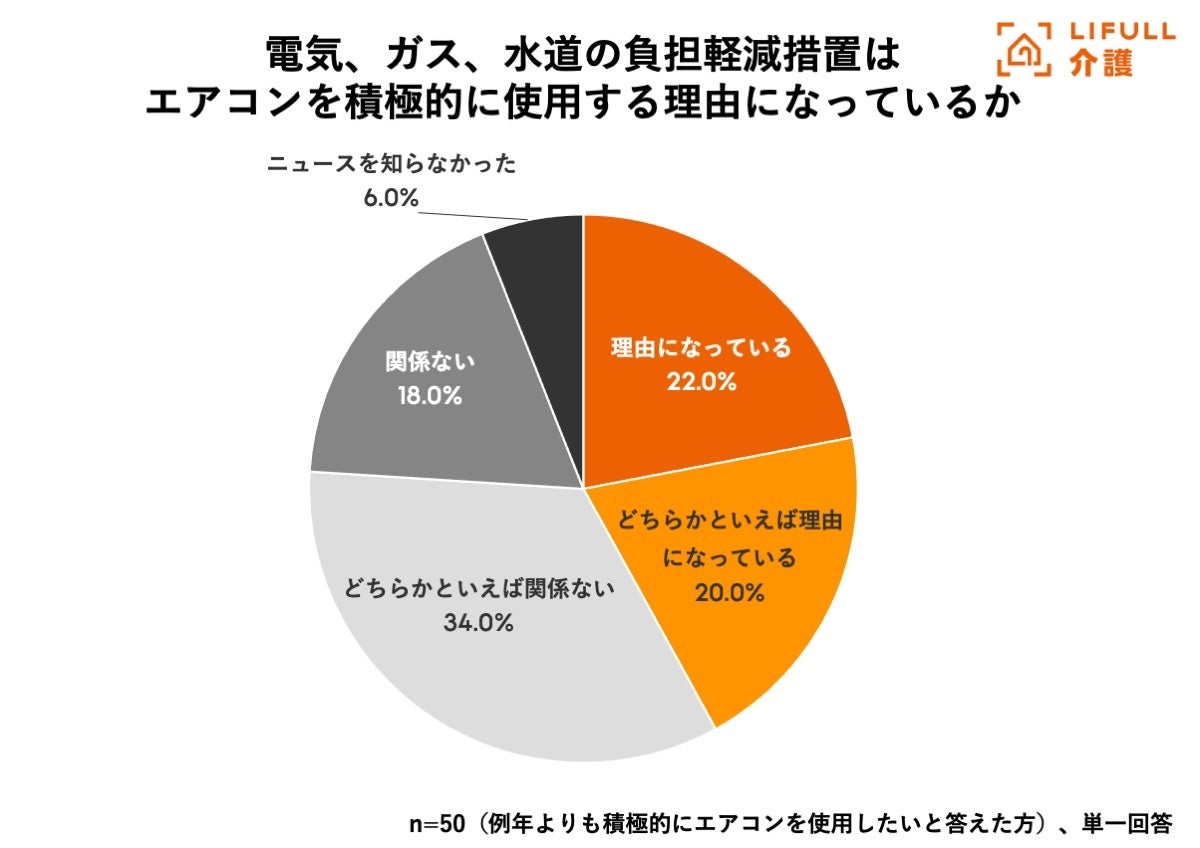 電気、ガス、水道の負担軽減措置は「エアコンを積極的に利用する理由になっている」と答えた人が42%。ニュースを知らなかった人は6%にとどまる