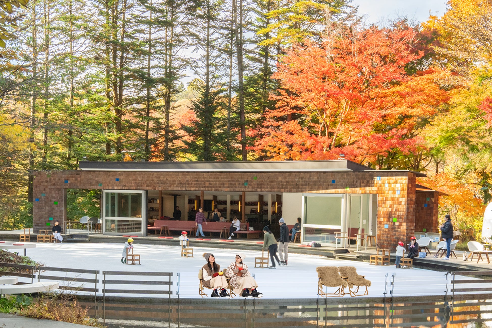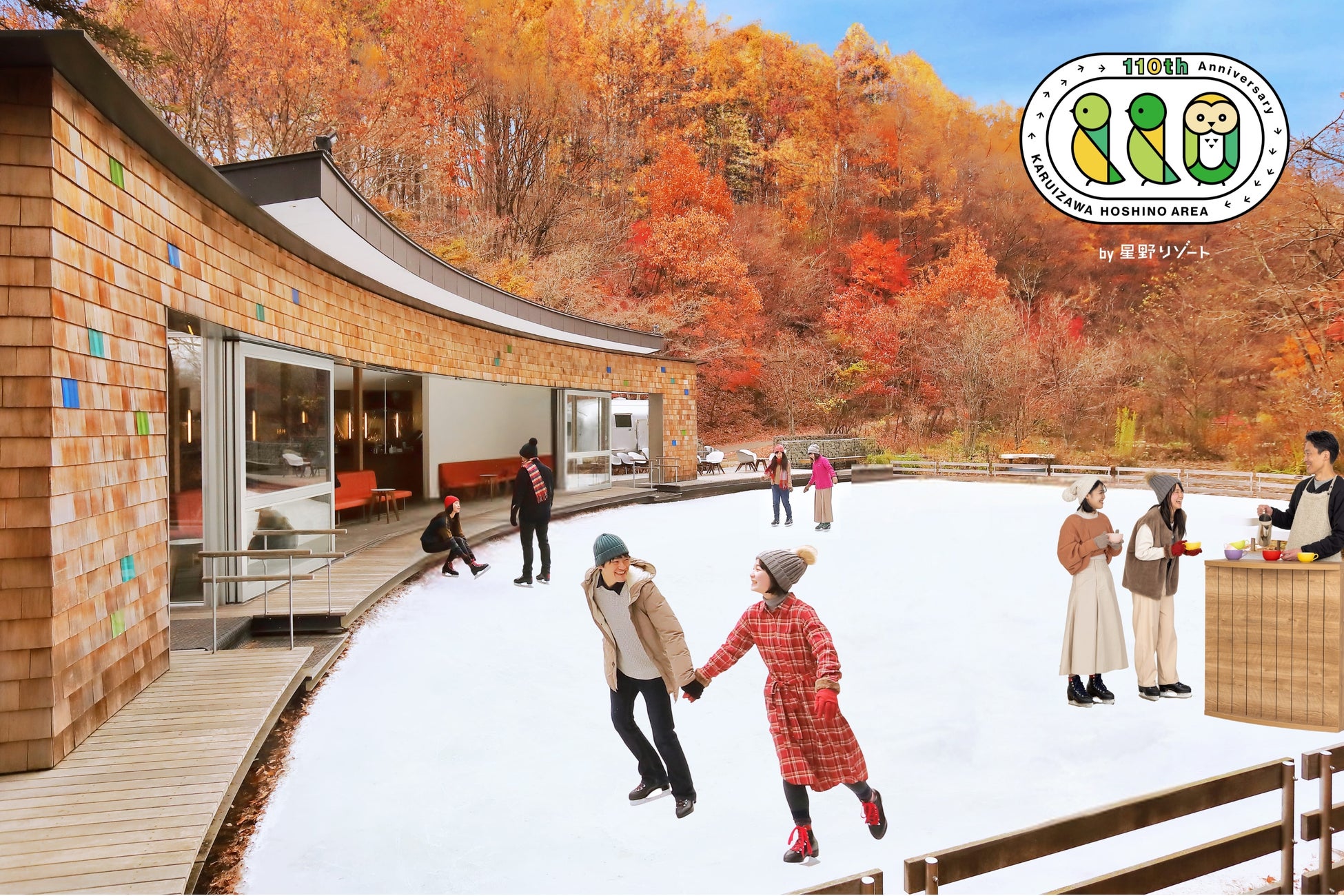 【軽井沢星野エリア】今年も「ケラ池スケートリンク」がオープン!紅葉を眺める特別席とおしるこバーが新登場|期間:2024年10月18日~11月30日