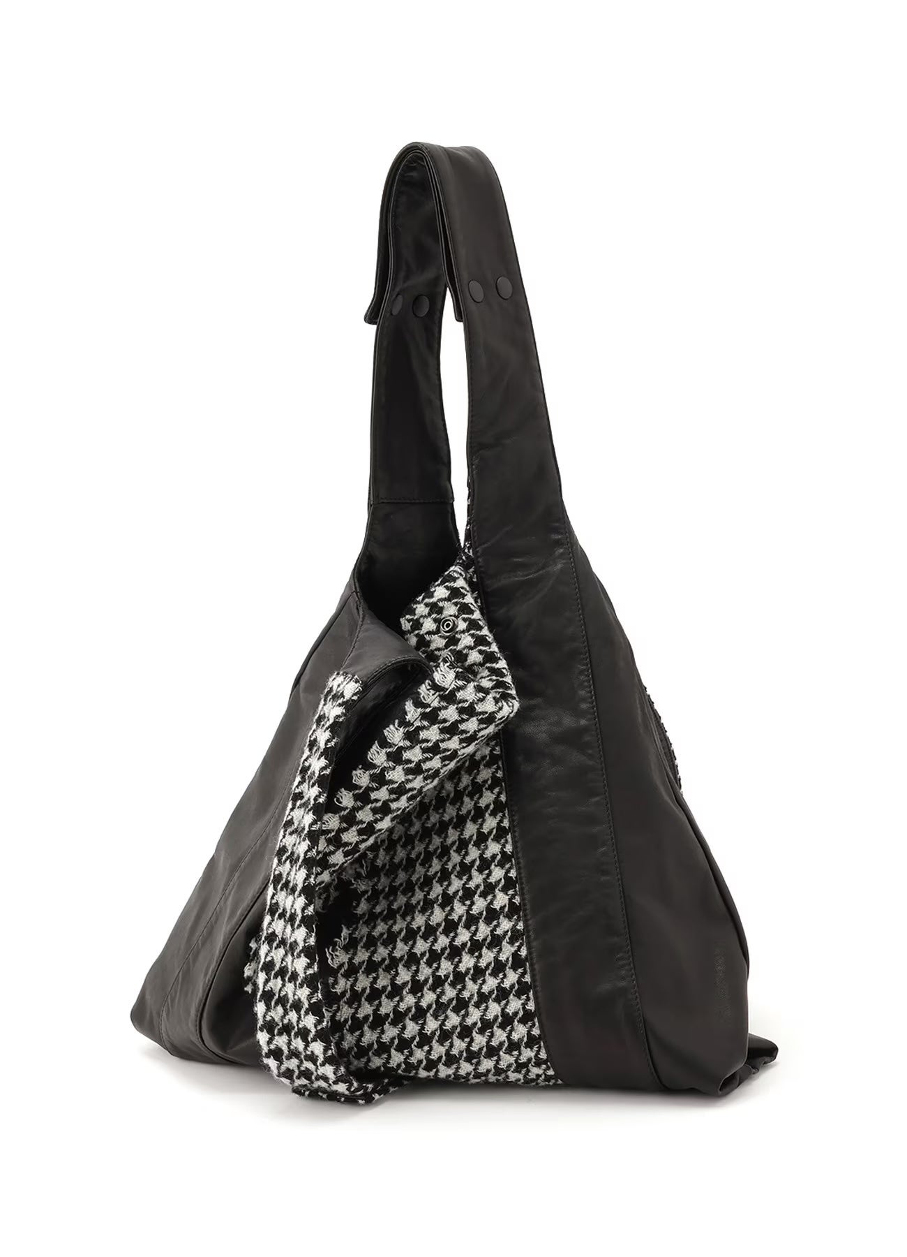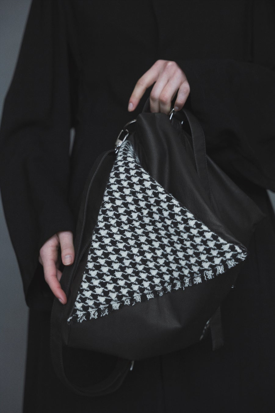 ハンドルのドットボタンの組み換えで3通りの形になるショルダーバッグ「INFINITE」のミドルサイズ。千鳥格子が構成された2024秋冬の表現。