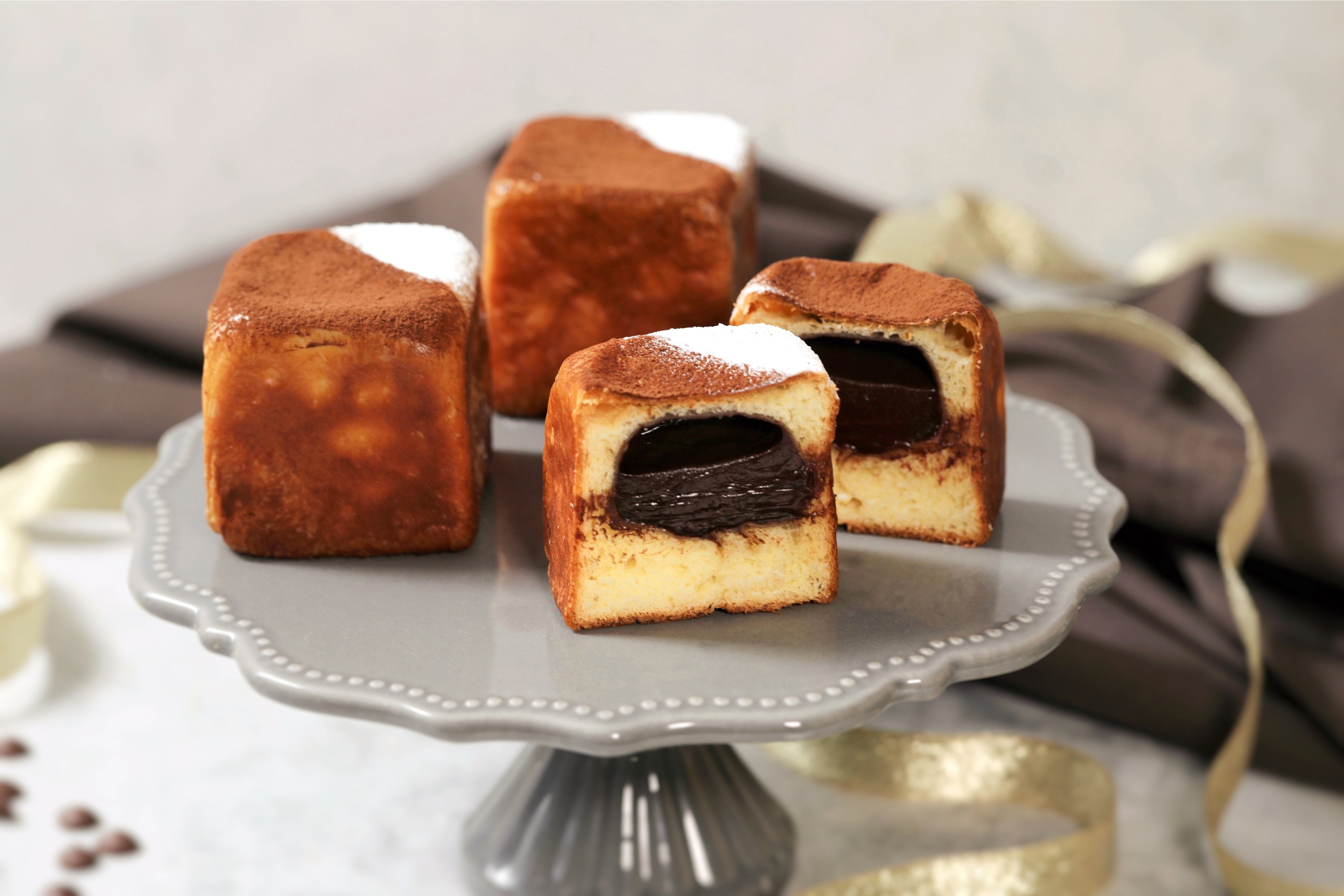 - ブリオッシュ生地でとろける生チョコを包んだ、キューブ型のころんとした可愛らしいパンです。