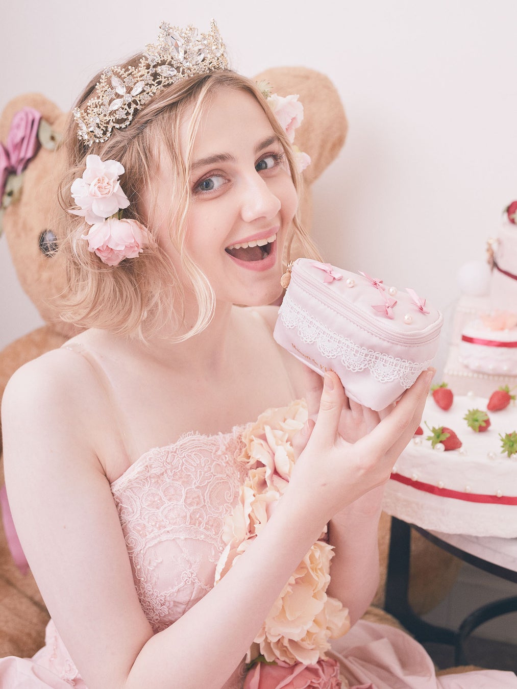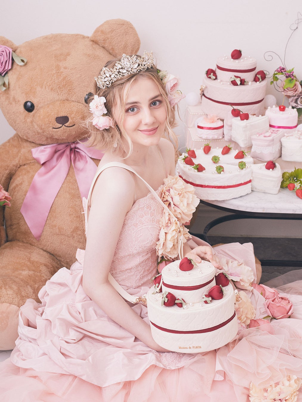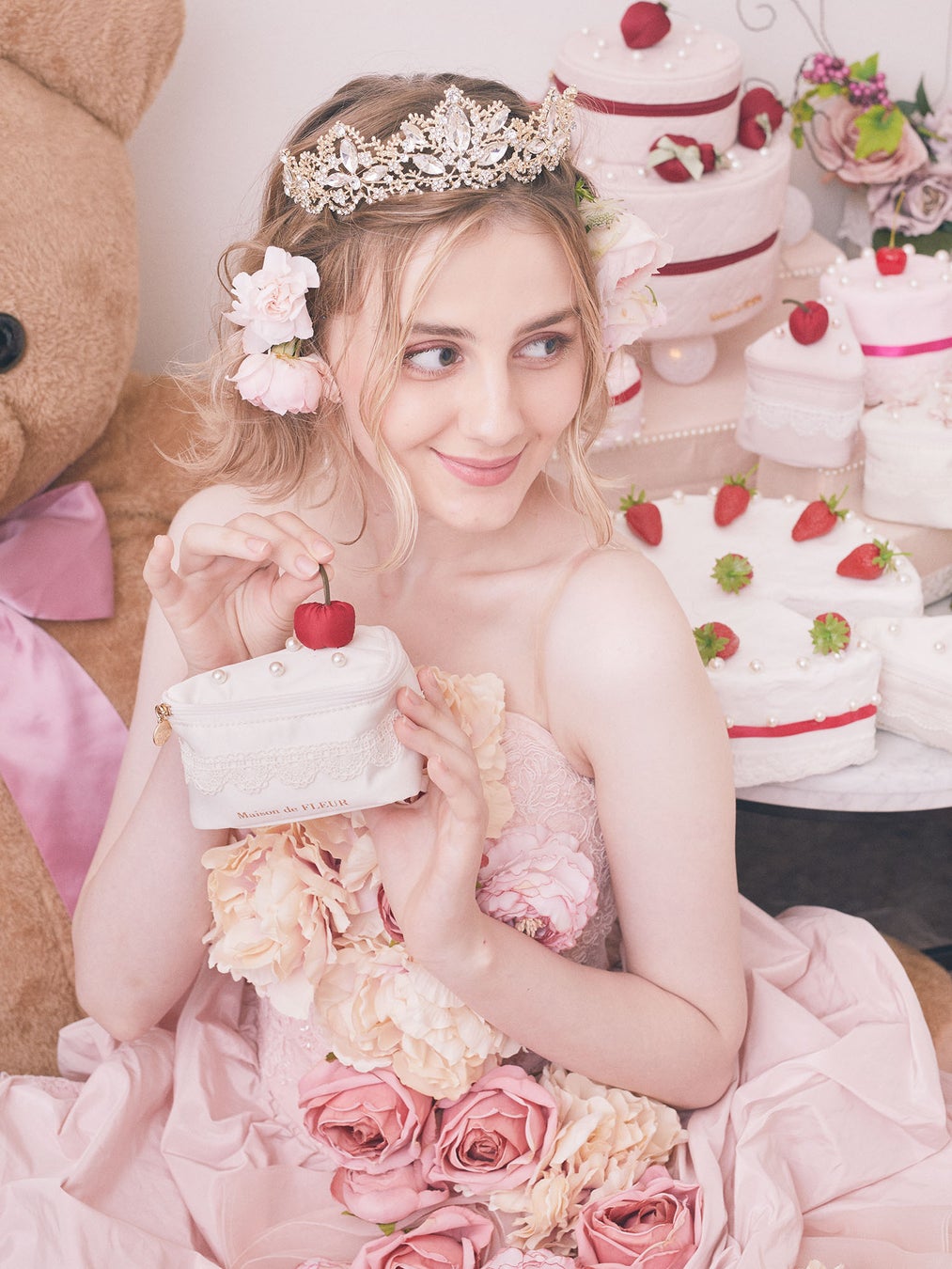 特別感たっぷりなケーキモチーフのバッグとポーチを作りました。いちごやリボンのデコレーションもこだわりポイント。