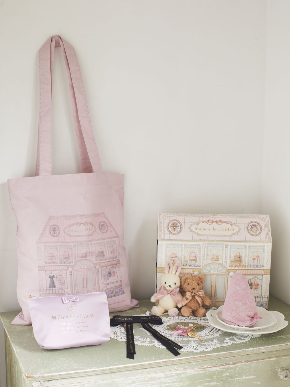 【トートバッグ、ポーチ、リボンバレッタ、ぬいぐるみチャーム2種、ハンカチ、チャームの7点入り】