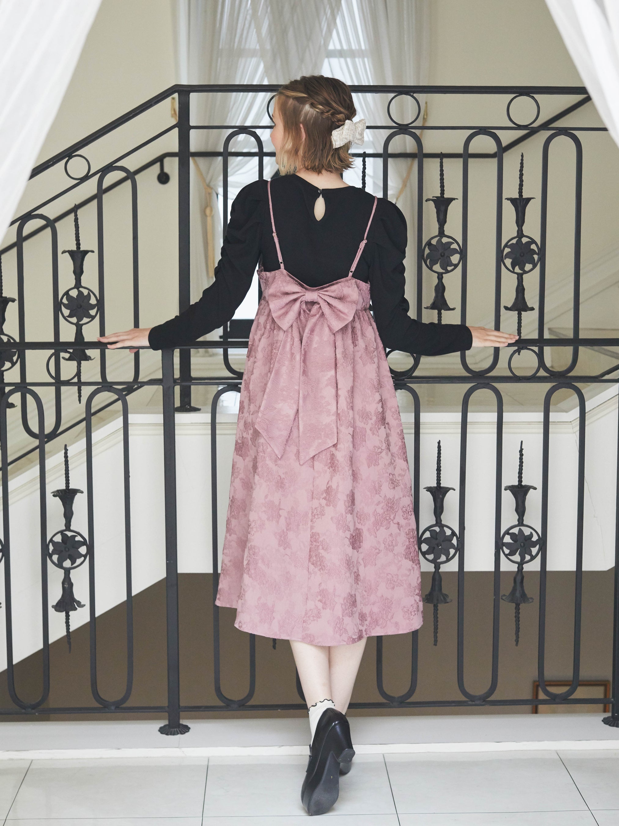 高級感のある立体花柄ジャカード生地を使用した、大人かわいいキャミワンピース。