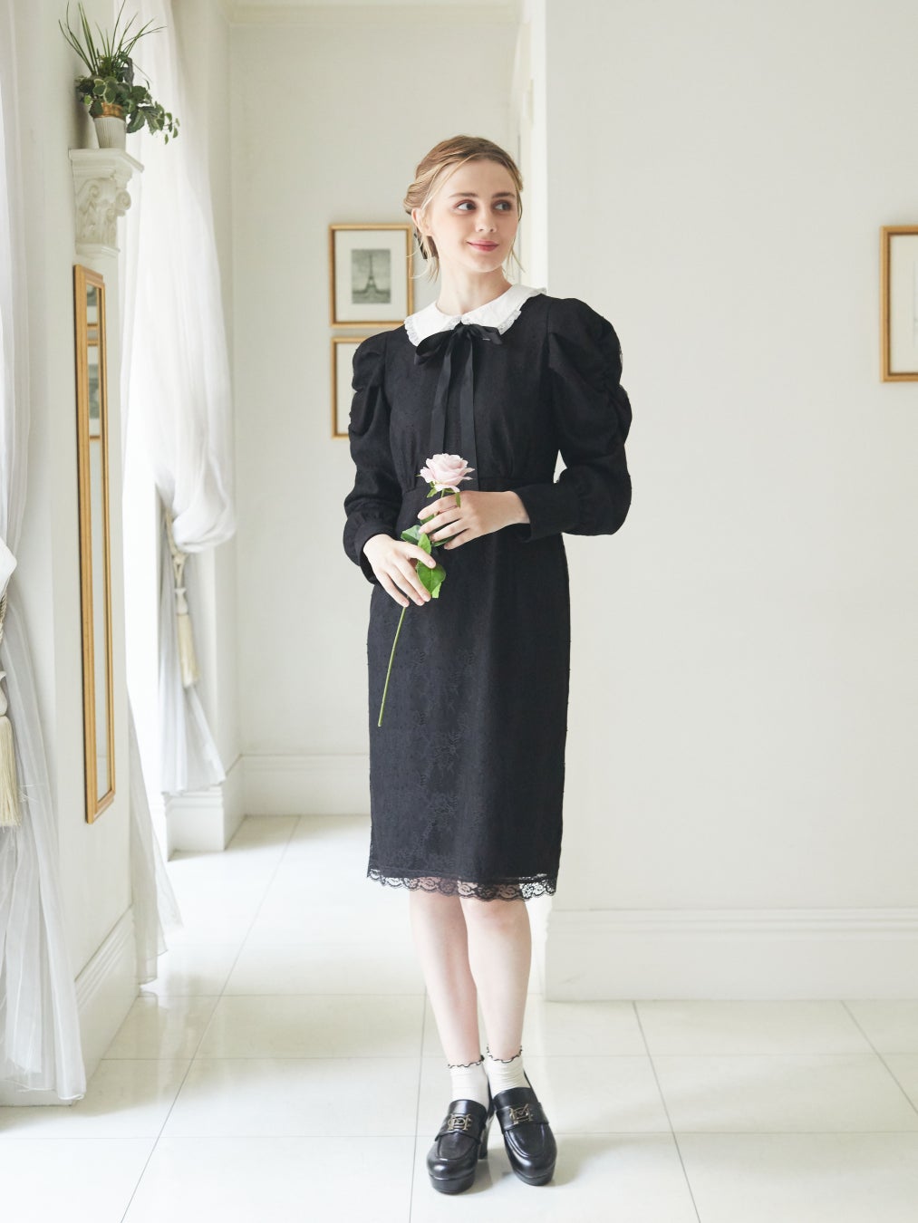 暑さの残る秋口でも着やすい、総レースの上品な襟付きワンピース。