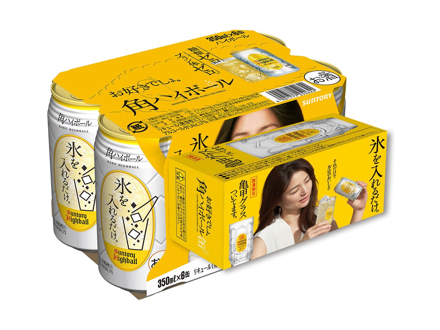 7月26日(火)より、「角ハイボール350ml缶6缶パック」に“氷とたのしむ亀甲グラス”1個が付いたセットを数量限定で発売します。グラスは、「角瓶」の象徴である亀甲模様をデザインしたオリジナルグラスです。