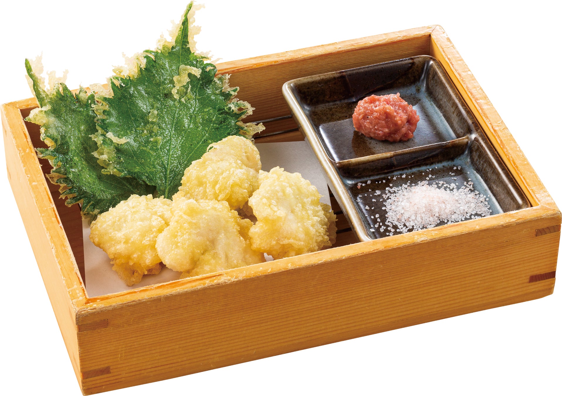 さらに、うなぎだけでなく鱧を使用した商品も登場します。「国産 天然鱧と大葉の天ぷら 梅わさび」は、店内で揚げて、外はサクサク、中はふわふわの鱧の天ぷらを岩塩と、オリーブオイルで和えた梅肉とわさびでお楽しみいただけます。