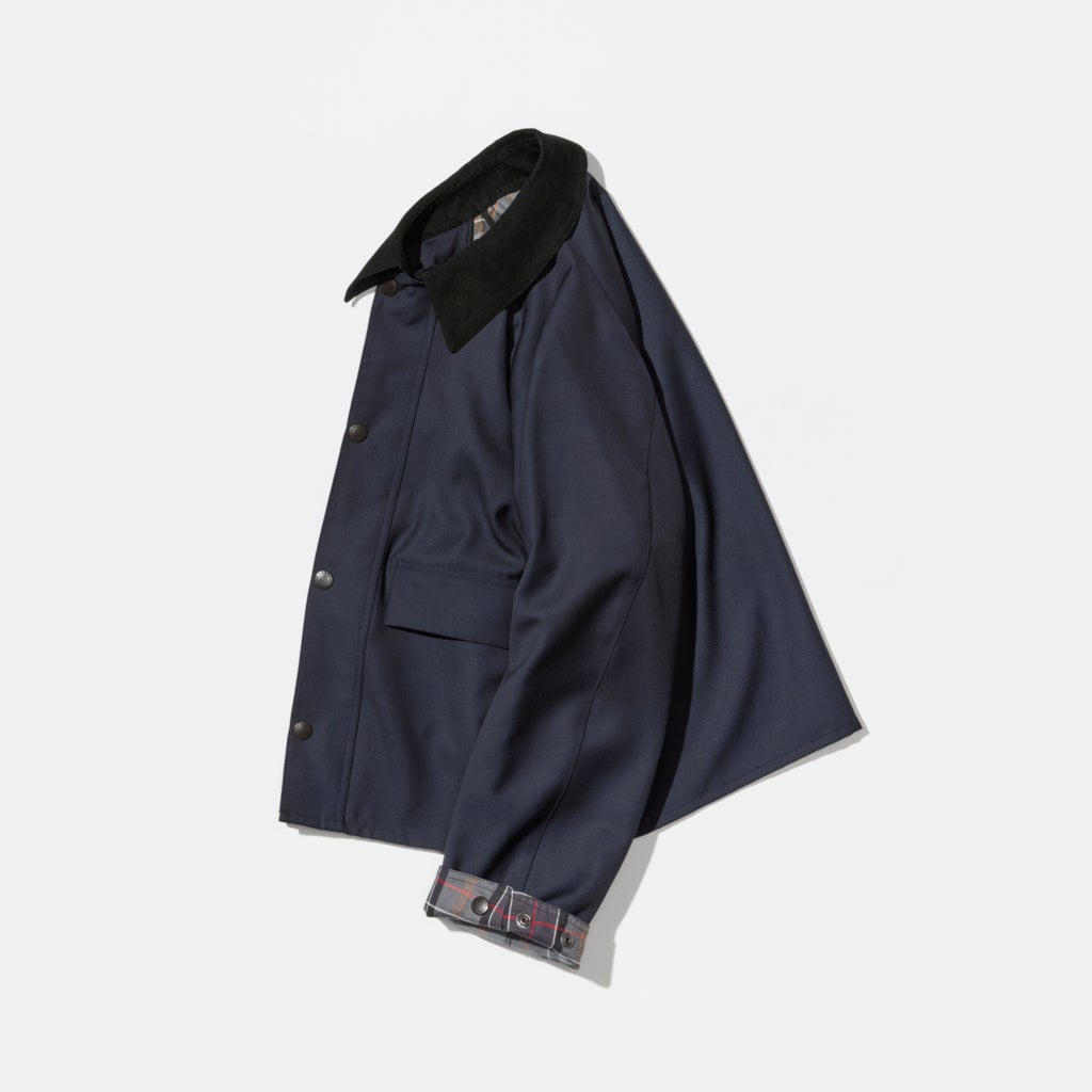 〈Barbour(バブアー)〉を代表するショート丈のブルゾン『SPEY』に素材を別注しました。 インラインのモデルよりも着丈を長くすることでタウンユースにフィットさせるなど、細かなサイズ調整を加えています。