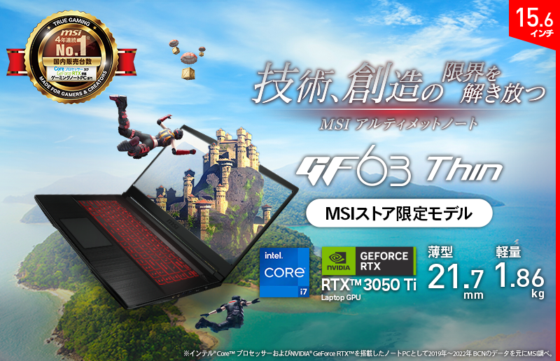 ・GF63-11UC-1901JP販売ページ:https://jpstore.msi.com/shopdetail/000000000471/