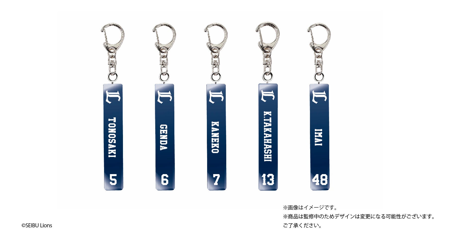 イニシャルマークの「L」を筆頭に、人気選手の名前と背番号を冠したファン必携のアイテムです。