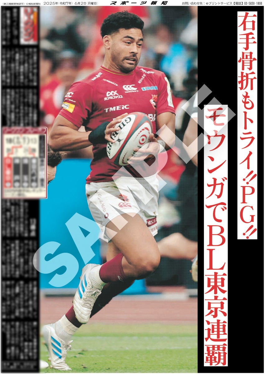 スポーツ報知を発行する報知新聞社(代表取締役社長・依田裕彦)は新聞の一部紙面をコンビニエンスストアのマルチコピー機からプリントできる「スポーツ報知コンビニプリント」サービスをスタートし、続々と新しい紙面が登場しています。スポーツ紙ならではの大きな写真を使った紙面をプリント版として販売。このたびスポーツカテゴリーを新設。ラグビーリーグワンで優勝したBL東京の紙面3種と競馬の日本ダービーで優勝したクロワデュノールの紙面を販売中です。優勝の感動を大きな写真とともに味わってください。