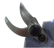 手動より数倍速く、スムーズな剪定が可能な電動剪定鋏ですが、「電動剪定鋏は重くて手首や腕がすぐ疲れる」との声を頂戴し、当社では重量を約760g、従来自社製品と比べ約38%軽量化した充電式軽量剪定鋏を商品化しました。また、刃の動きはスイッチ(トリガー)と連動しているため、手鋏の感覚でスムーズな開閉ができます。これにより、手首や腕への負担が大幅に軽減され、長時間作業でも疲れにくくなりました。