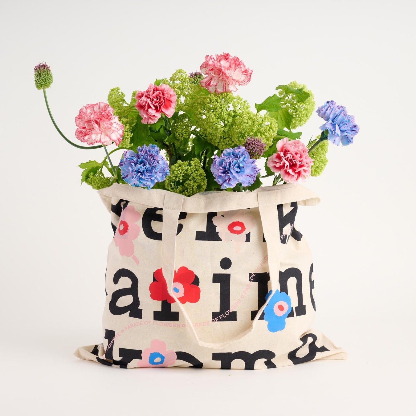 イベント開催に合わせて、5月31日(土)から全国のマリメッコストアにて税込27,500円以上お買い上げのお客様に、〈Parade of flowers in Tokyo〉スペシャルデザインのファブリックバッグをプレゼントします。なお、日本公式オンラインストアとマリメッコ 表参道では、全国のマリメッコストアに先駆け、先行配布しております。