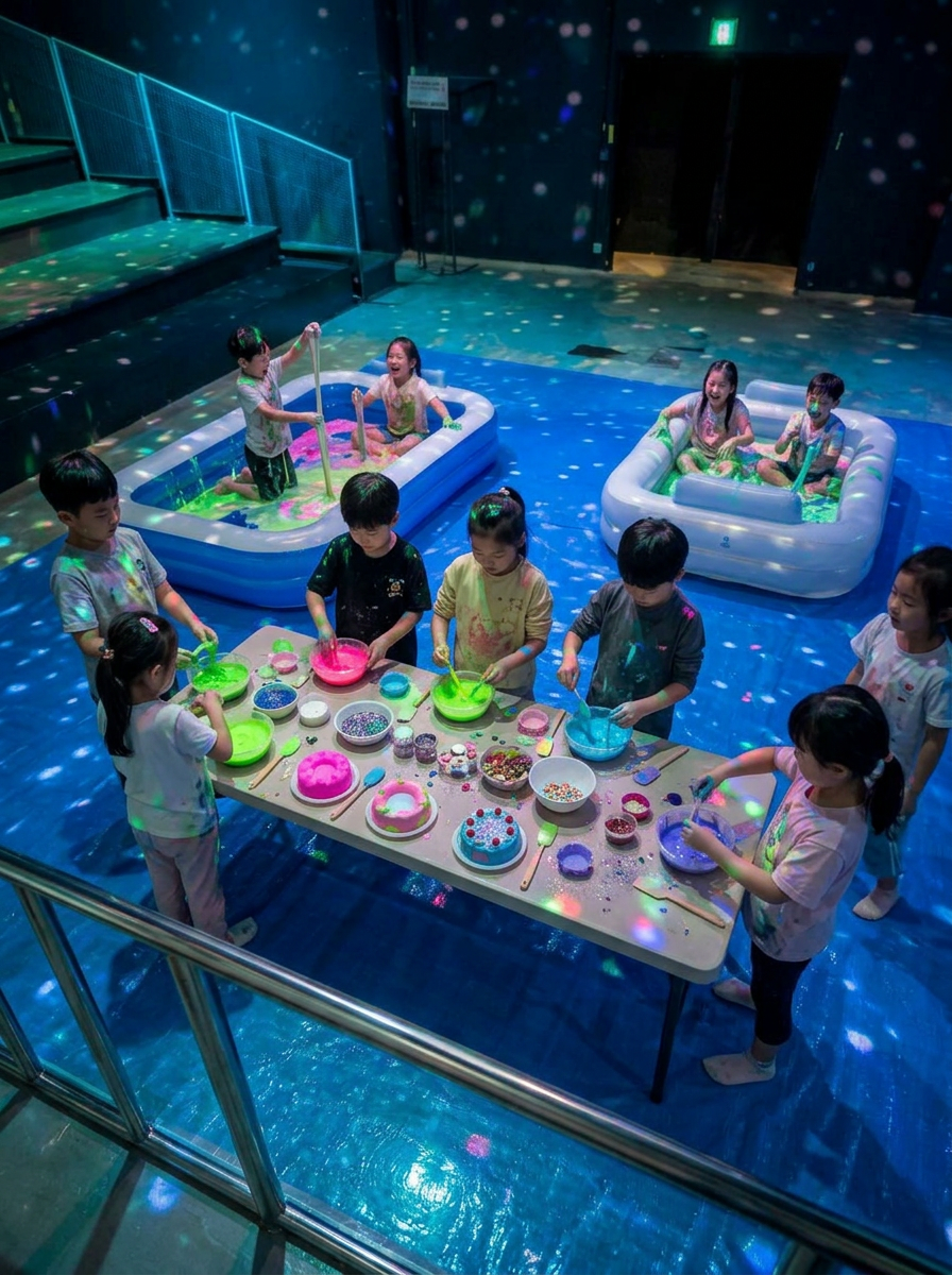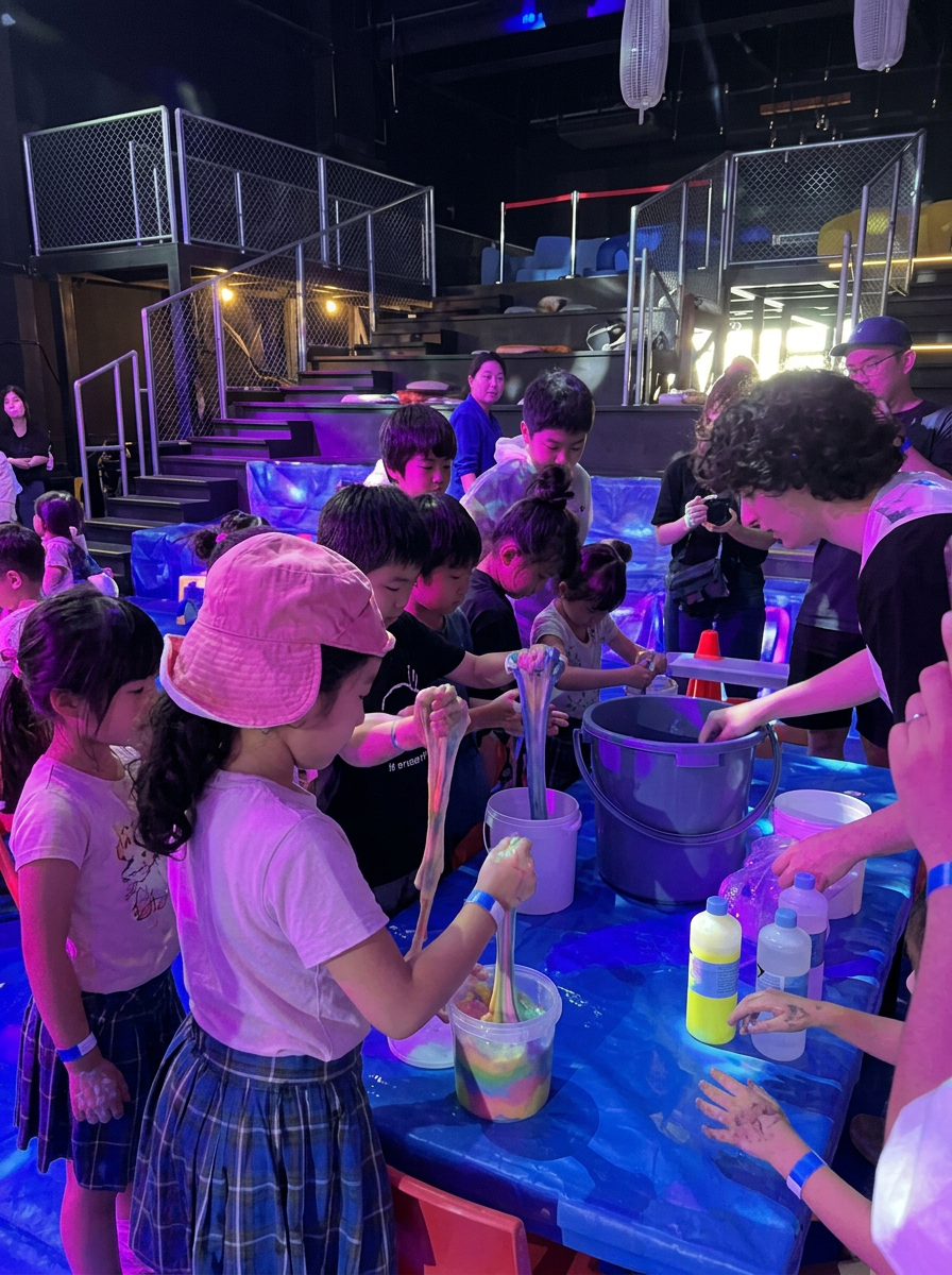 腕、身体、空間すべてを使ってスライムに入り込むことで、子どもたちは自然と没入し、遊びに引き込まれていきます。