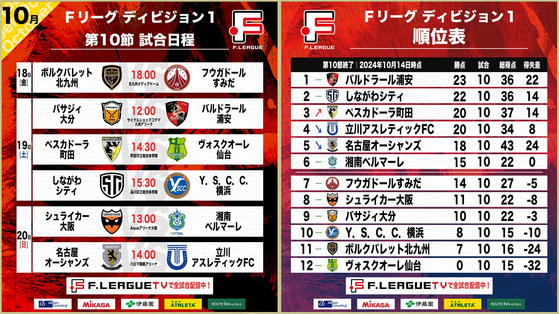 【F1第11節|10月18日〜20日 試合情報】会場情報/チケット情報/注目ポイントは?【Fリーグ2024-2025 ディビジョン1】今こそ最高のフットサルを