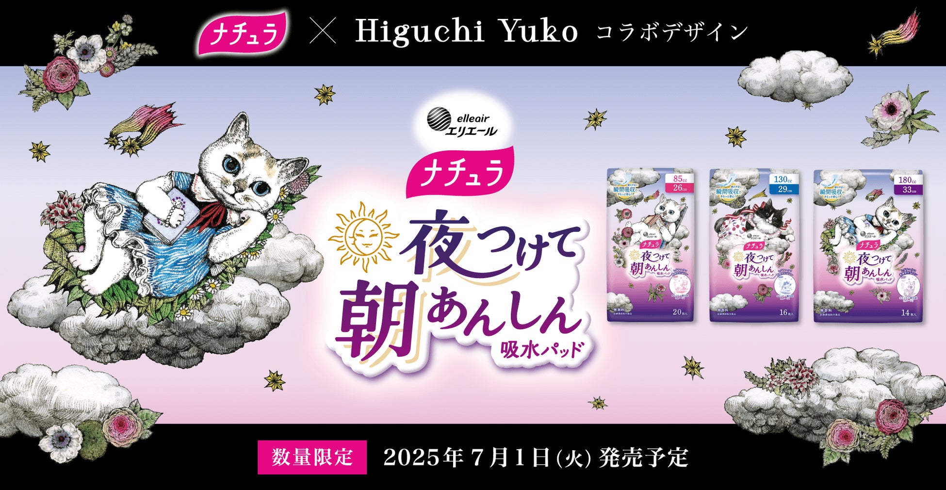 衛生用紙製品No.1ブランド※1の「エリエール」を展開する大王製紙株式会社(本社:東京都千代田区)は、個性溢れる世界観で人気の画家・ヒグチユウコさんとコラボレーションした「ナチュラ 夜つけて朝あんしん 吸水パッド ヒグチユウコ コラボデザイン」(3商品)を2025年7月1日(火)から数量限定で全国発売します。