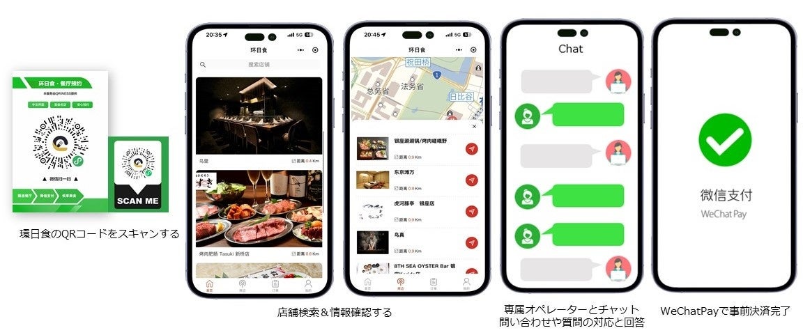 このサービスは、中華圏のお客様を中心に馴染みのあるWeChat(※1)にてお客様ご自身でレストラン検索とWeChat Pay決済まで完結するサービスです。これにより、大人数でのご利用やローカルレストランなど、よりお客様のご要望に合ったレストランをご利用いただけるようになります。