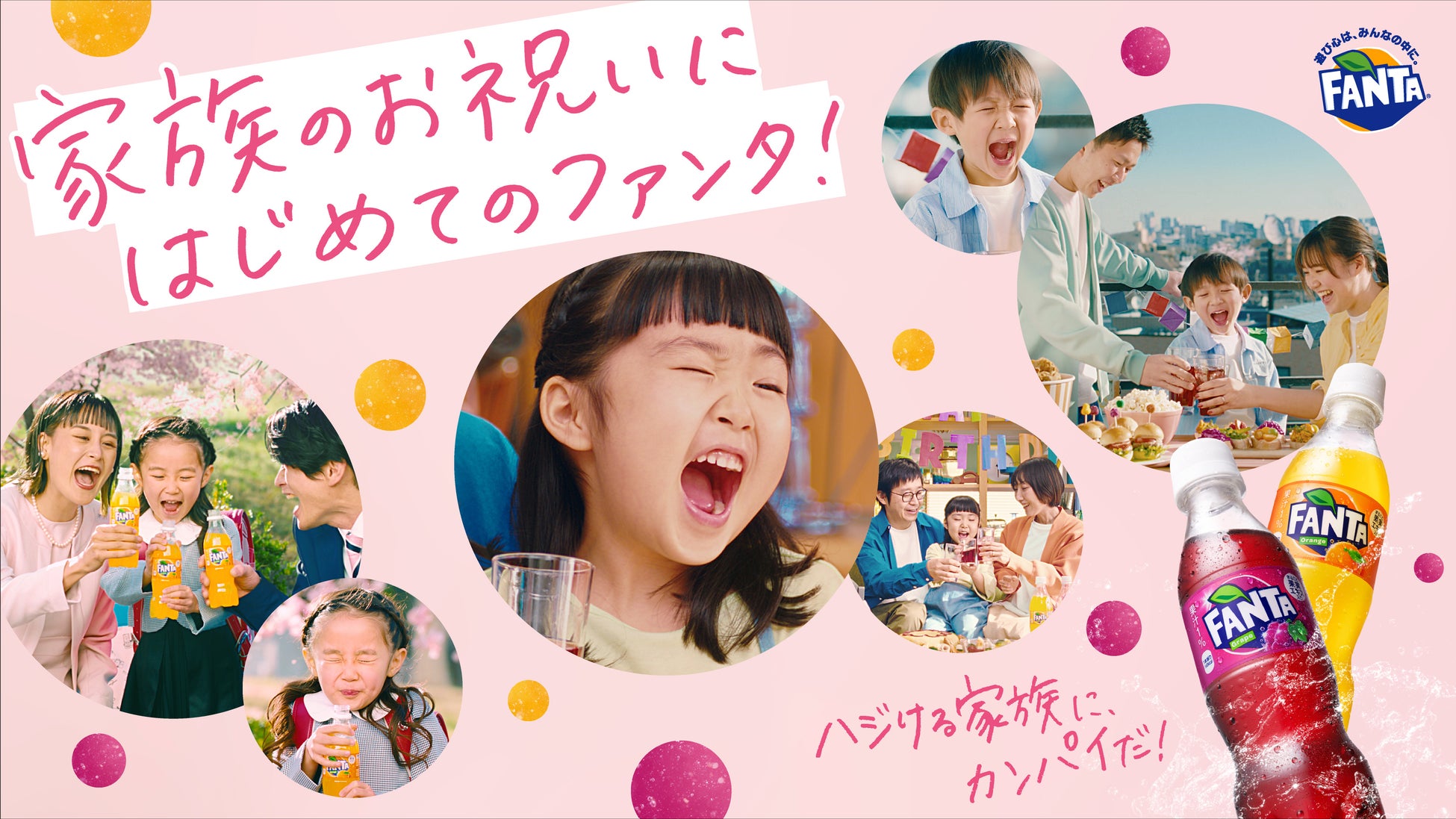 こうした中、家族みんなが笑顔になれる楽しい時間を応援する「ファンタ」は、「せっかくの入学式だから家族全員でハジける笑顔を残したい」という想いを叶えるべく、“かぞく入学式”と題して、ご自宅にて家族だけで行う新一年生お祝いの記念撮影を企画、撮影に参加してくださるご家族をTwitterなどで募集しました。本CMは、その“かぞく入学式”の様子をおさめたもので、新入学のお祝いに「ファンタ」で乾杯する様子や、この日初めて「ファンタ」を飲んだ子どもたちのリアルなリアクションなど、笑顔いっぱい、喜びに満ちた家族のシーンが凝縮されています。