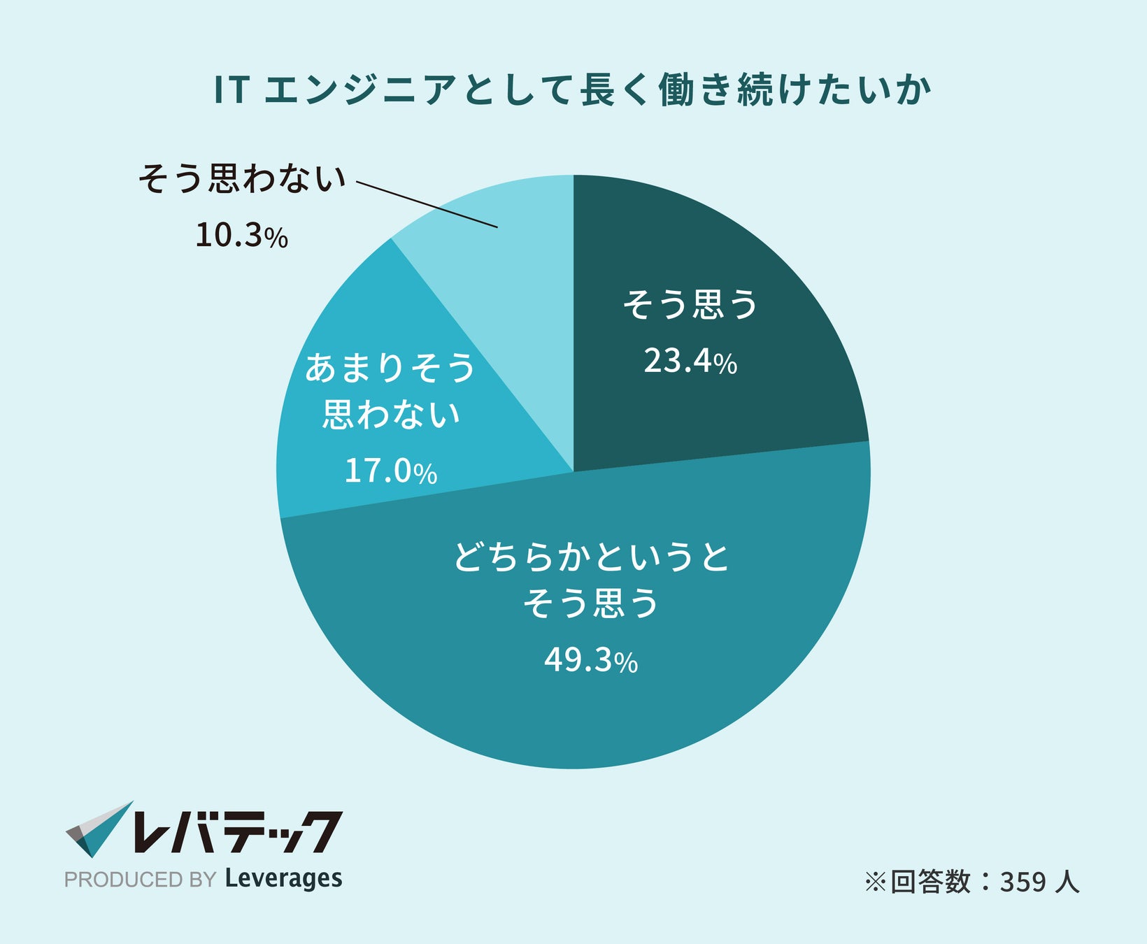 将来のキャリアについて、「ITエンジニアとして働き続けたい」と回答した方は全体の7割を超えました。