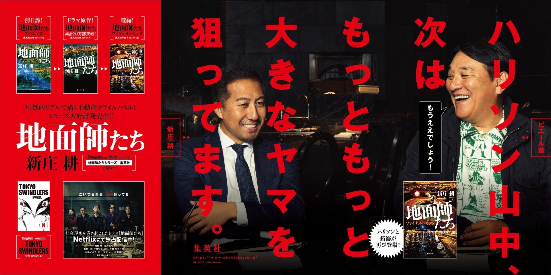 【掲出中の集英社文庫『地面師たち』シリーズ駅貼りポスターでもオーディオブック版をご紹介!】