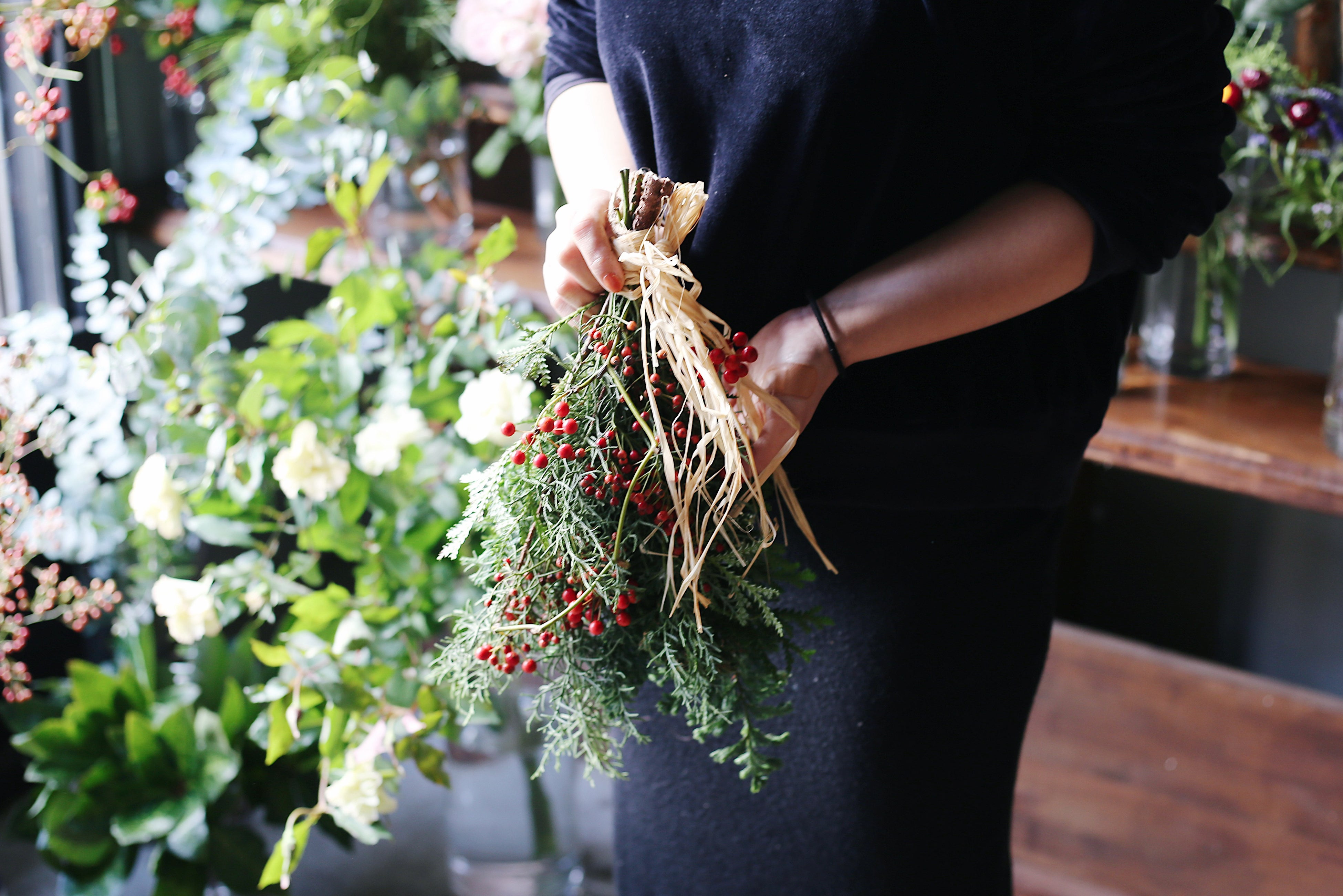 POP UP STOREでは、フローリストがその場で花束を束ね、ホリデーシーズンにぴったりのクリスマスリースやスワッグなども販売致します。花や植物に関して、お気軽にご相談ください。