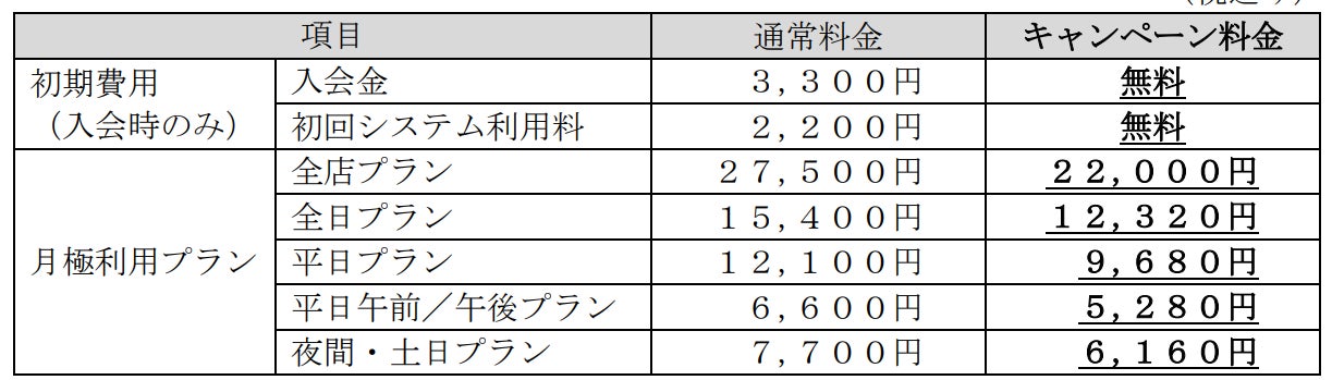 また、入会月から6月までの月極利用プランが2割引でご利用いただけるため、最大4カ月間割引となります。