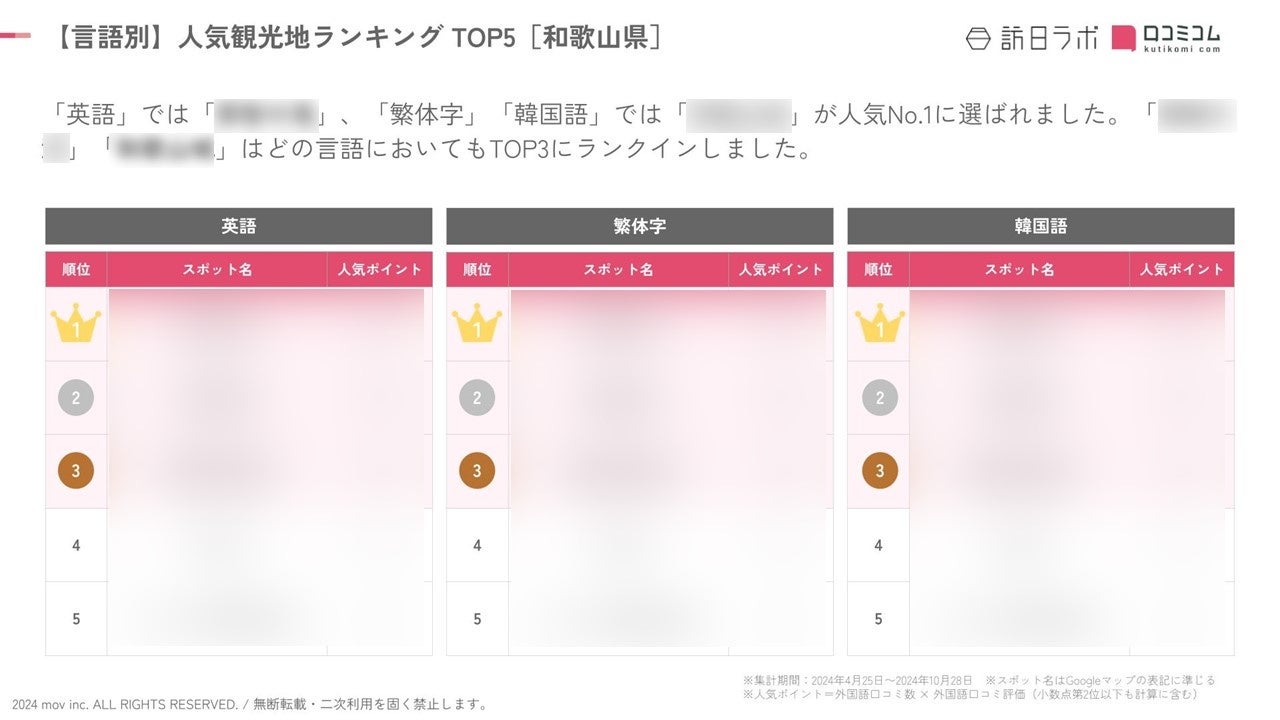 そのほか、言語別ランキングや口コミ分析の詳細は、調査資料をご覧ください。