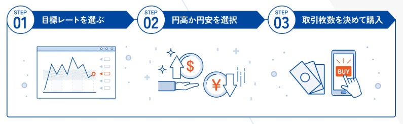 GMOクリック証券のバイナリーオプション「外為オプション」は、3ステップで簡単に購入でき、1,000円未満の少額取引に対応しているため、初心者の方でもお取引しやすい環境をご提供しております。