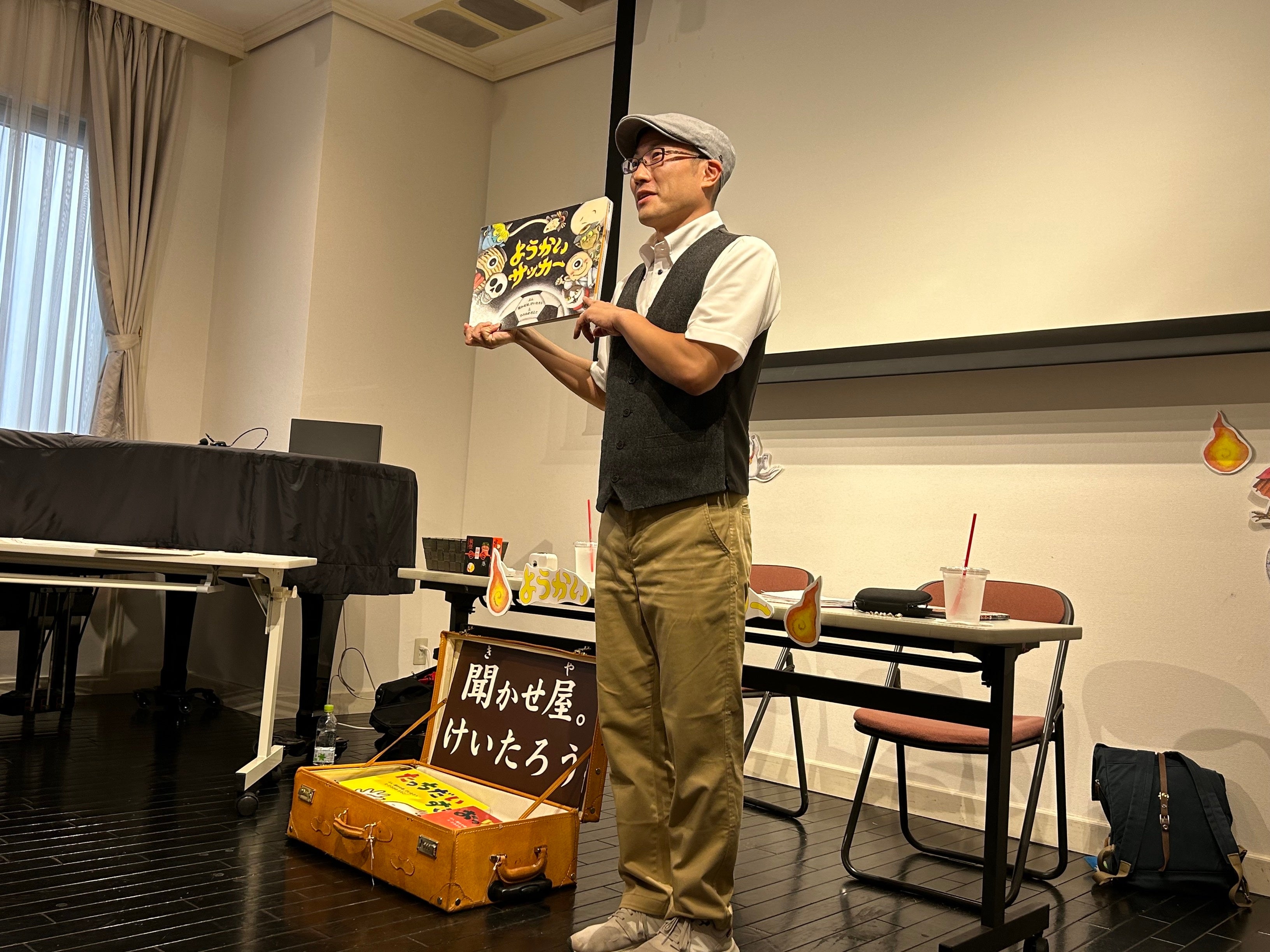 2000回以上読み聞かせをしてきた「聞かせ屋。けいたろう」がトークイベントを開催。新作スポーツ絵本『ようかいサッカー』の誕生秘話とは!?