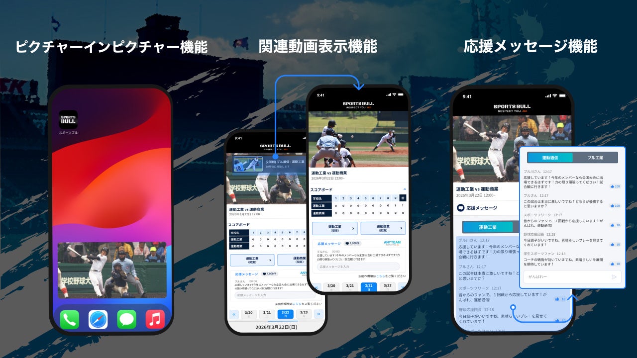「SPORTS BULL」のライブ配信を通して、学生野球全体を盛り上げていくとともに、競技の普及・発展に貢献していきます。