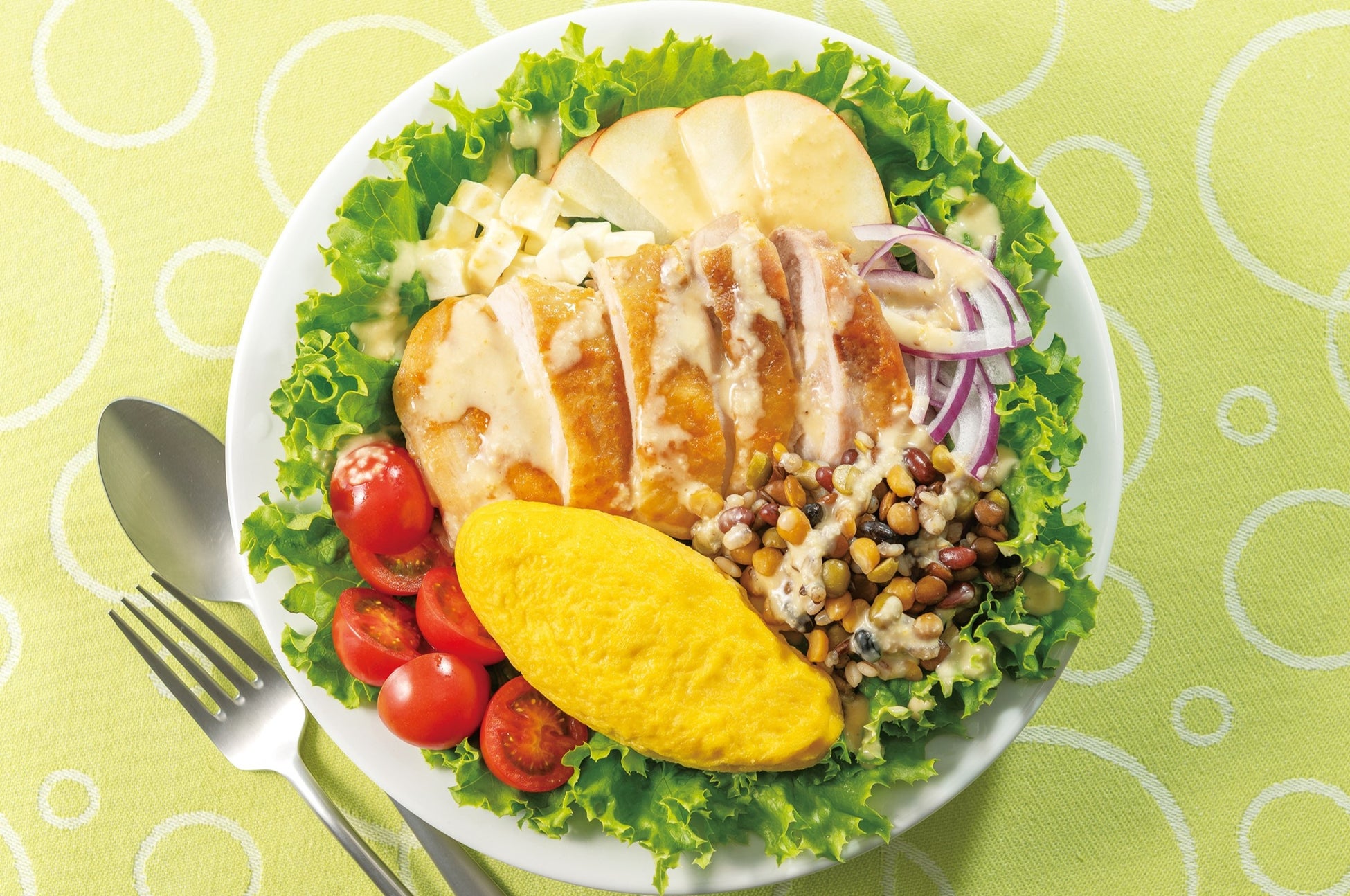 カルシウム・鉄がたっぷり入った、ふんわり食感のオムレツです。さまざまなソースに合うよう、シンプルな味付けにしました。