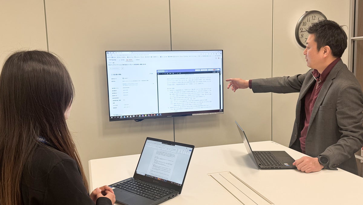 双日テックイノベーションの担当者がContract Oneを使用して業務に取り組む様子