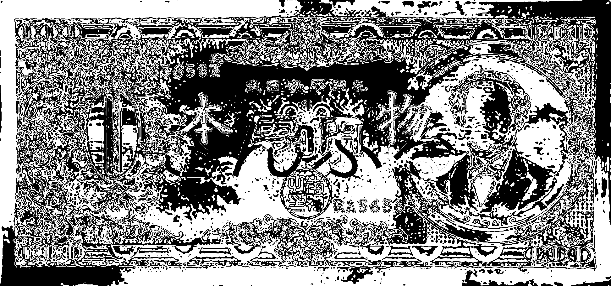 ⾚瀬川は1960年代初頭、旧千円札紙幣を写真製版によって複製し、これを⽤いてさまざまな作品制作を⾏いました。この取り組みは「通貨及証券模造取締法」に触れ、⾚瀬川は起訴されることとなり裁判となりました。
