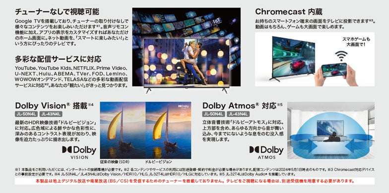 ※4 JL-50N4L/JL43N4LはDolby Vision/HDR10/HLG、JL-32T4LはHDR10/HLGに