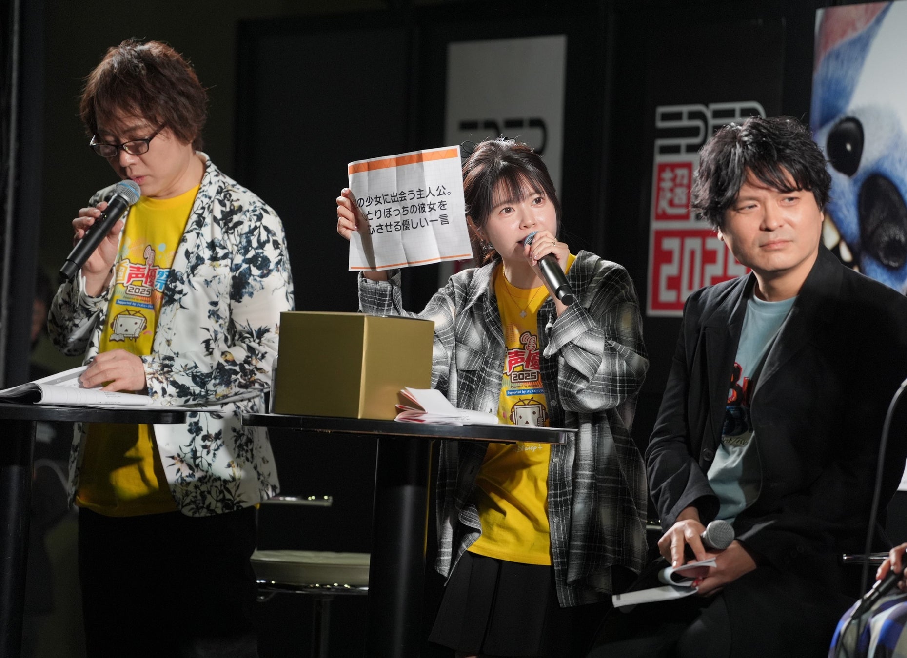続いてはディズニー/ピクサー作品で、『ズートピア2』が2025年冬に日本で公開されることが紹介され、ニック・ワイルド役の森川に置鮎が「公開楽しみですね!」と言うと「いやー楽しみですね!でもまだオファー来てないんですけどね!(と、言うと)そう台本に書いてあります」と会場を笑わせました。そして『ズートピアセリフ当てクイズ』のコーナーへ。『ズートピア』のワンシーンで森川演じるニックがどんなセリフを言うかを3つの選択肢から選びます。視聴者もアンケート機能で参加したり、天神が3つの中にない選択肢を言ったりと、大いに盛り上がりました。実際のセリフを披露すると、視聴者から「メロすぎる」「きゃーーー」「いい声――――!!」とのメロメロなリアクションがありました。
