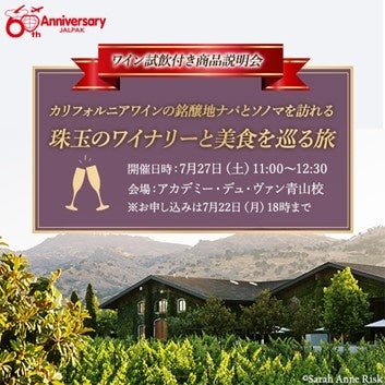 JALPAKブランド誕生60周年特別企画 ワイナリー巡り商品説明会&試飲付きワインセミナー募集開始! ~カリフォルニアワインの銘醸地 ナパとソノマを訪れる 珠玉のワイナリーと美食を巡る旅 7日間~