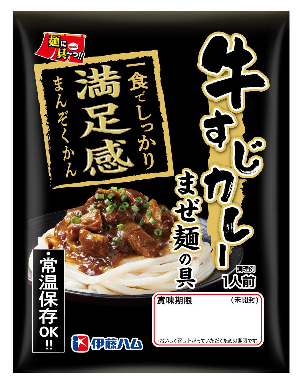 伊藤ハム株式会社は、「麺に具~っ!!」シリーズより、一食でしっかり満足感のある具入りだれ「牛すじカレーまぜ麺の具」を発売します。