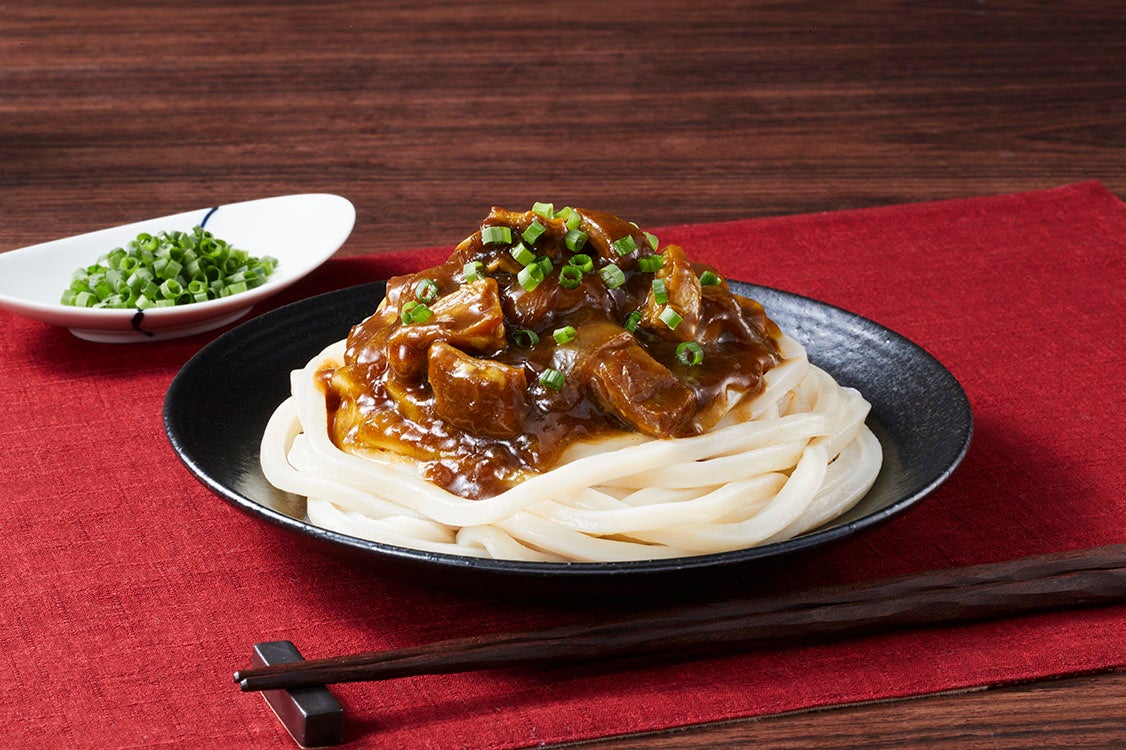 出汁の旨みとスパイシーさのバランスが取れたカレーソースに、ご家庭では準備や調理がしづらい「牛すじ」と、玉ねぎが入った具入りだれです。お好みの麺とあえても、ご飯にかけてもおいしくお召し上がりいただけます。ねぎやチーズをトッピングするアレンジもお薦めです。