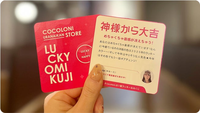 2025年5月6日(火)までに、X(旧Twitter)にハッシュタグ 「#cocoloni占い館ラッキーおみくじ」 をつけて、おみくじの画像を投稿してくださった方の中から抽選で当選された方に、1時間分の鑑定をプレゼントいたします。