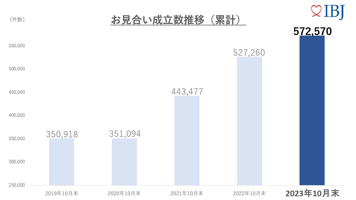 年内のお見合い成立数(累計)が過去最速で50万件を突破。