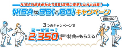 なお、当社は証券総合口座だけでなくNISA制度の普及にも積極的に取り組んでおり、2023年9月1日(金)から、新規で証券総合口座を開設されたお客さまに加えて、NISA口座を他社から当社に変更完了されたお客さまを対象として、「NISAはSBIでGO!最大2,350(ニーサゴー)円相当もらえる!キャンペーン」を実施しています。この機会に是非、当社でのNISAのご利用をご検討ください。