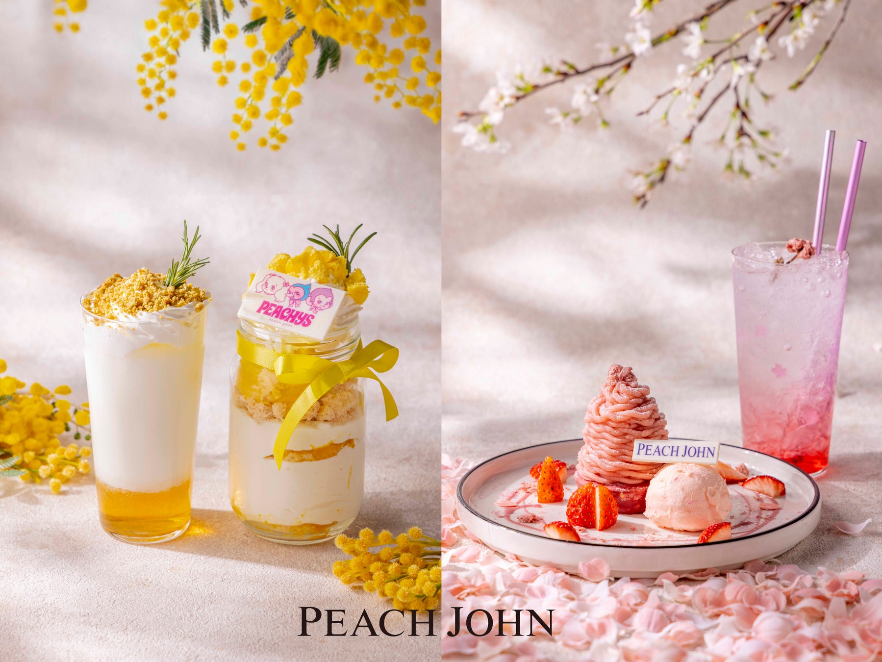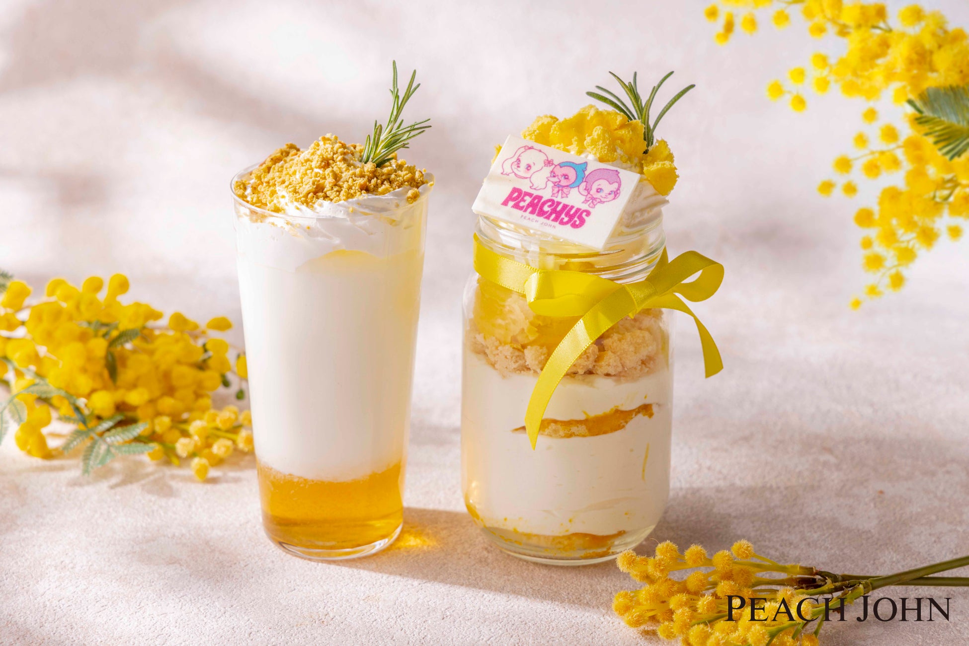 他にも、ミモザ&桜をイメージしたドリンクや、ピーチ・ジョンのロゴが入ったホットラテも期間限定で提供します。お好きなスイーツとドリンクを組み合わせて、楽しい春のカフェタイムをお過ごしください。