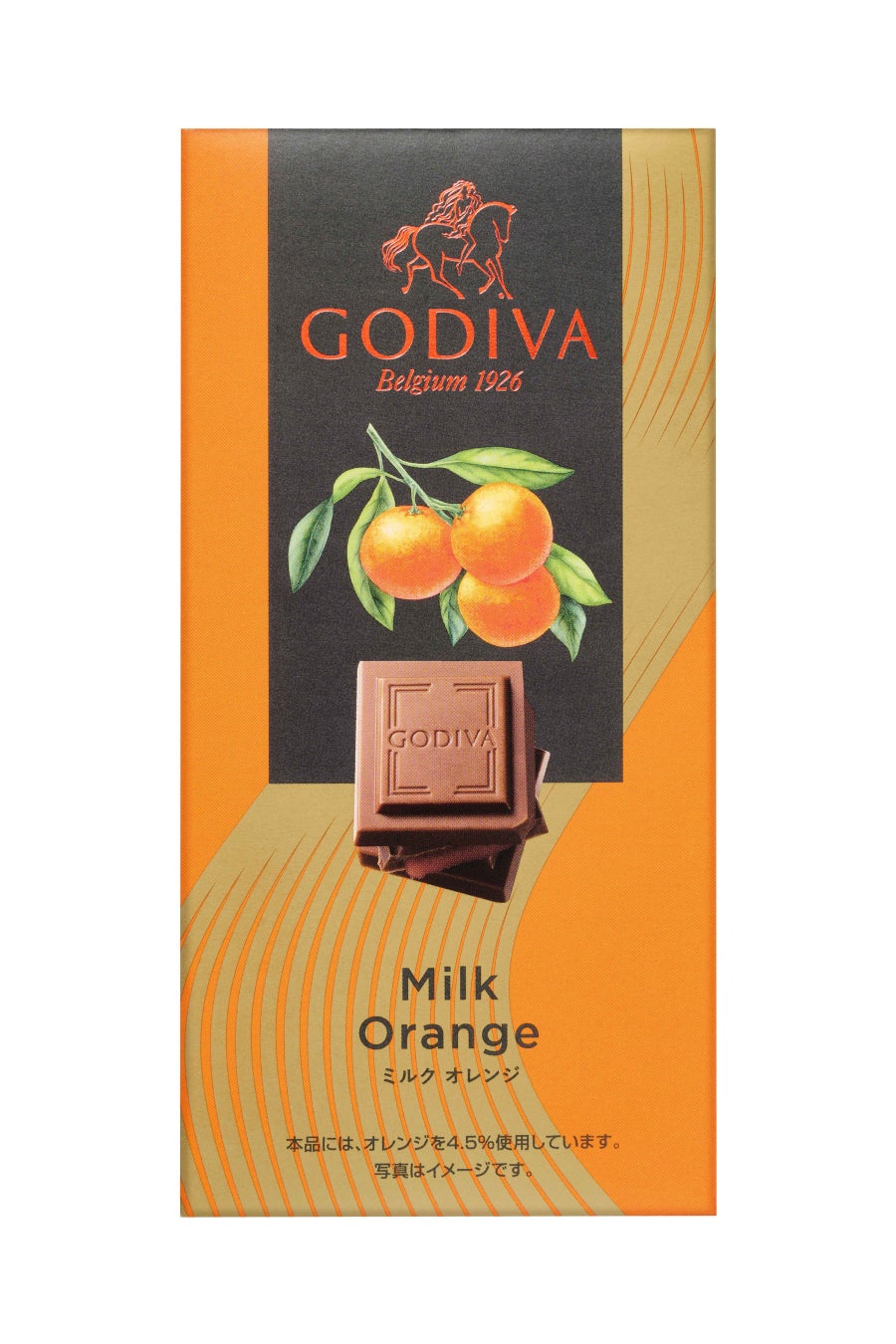 コクのあるミルクチョコレートの中にすっきりとした風味のオレンジ フィリングが入ったタブレットです。