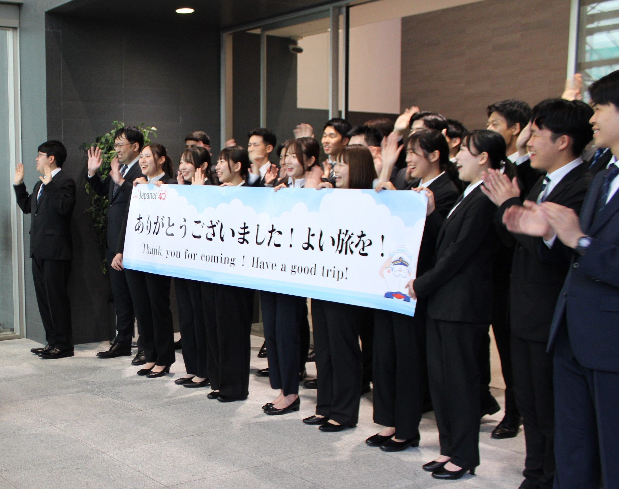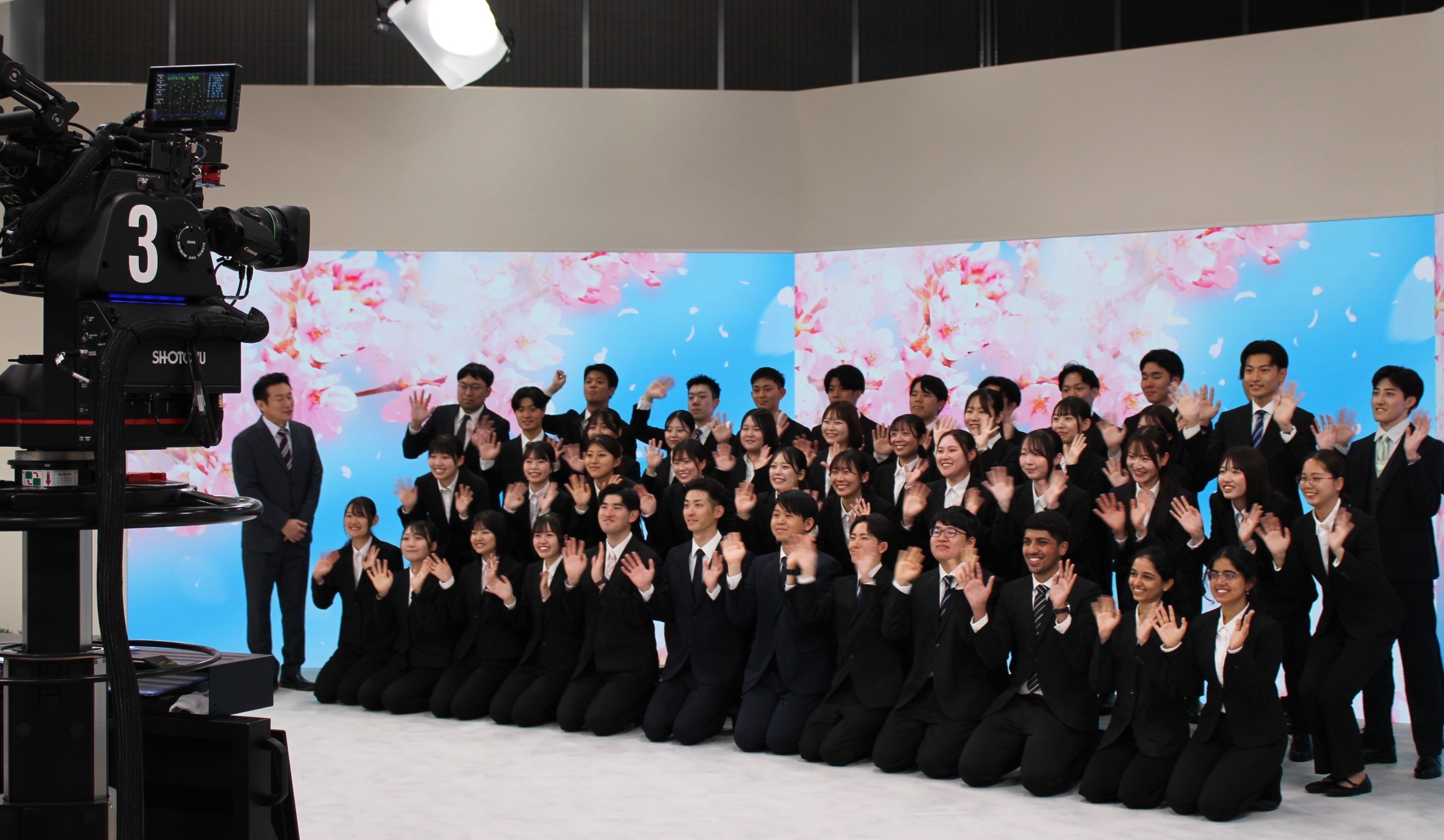 入社した45名は、毎年恒例となる初日の業務として、ジャパネットのテレビショッピングに生出演してご挨拶。午後には佐世保に入港したジャパネットクルーズのお客様の出港をお見送りするなど、さっそくジャパネットの事業を肌で感じる1日となりました。2026年度は従来の国内採用と並走し、今年は創業40年の歴史で初となるグローバル採用を行い、インドから3名のエンジニアを採用。IT大国インドの高度な教育を受けた若いチカラとともに、ジャパネットのシステム開発を強化してまいります。