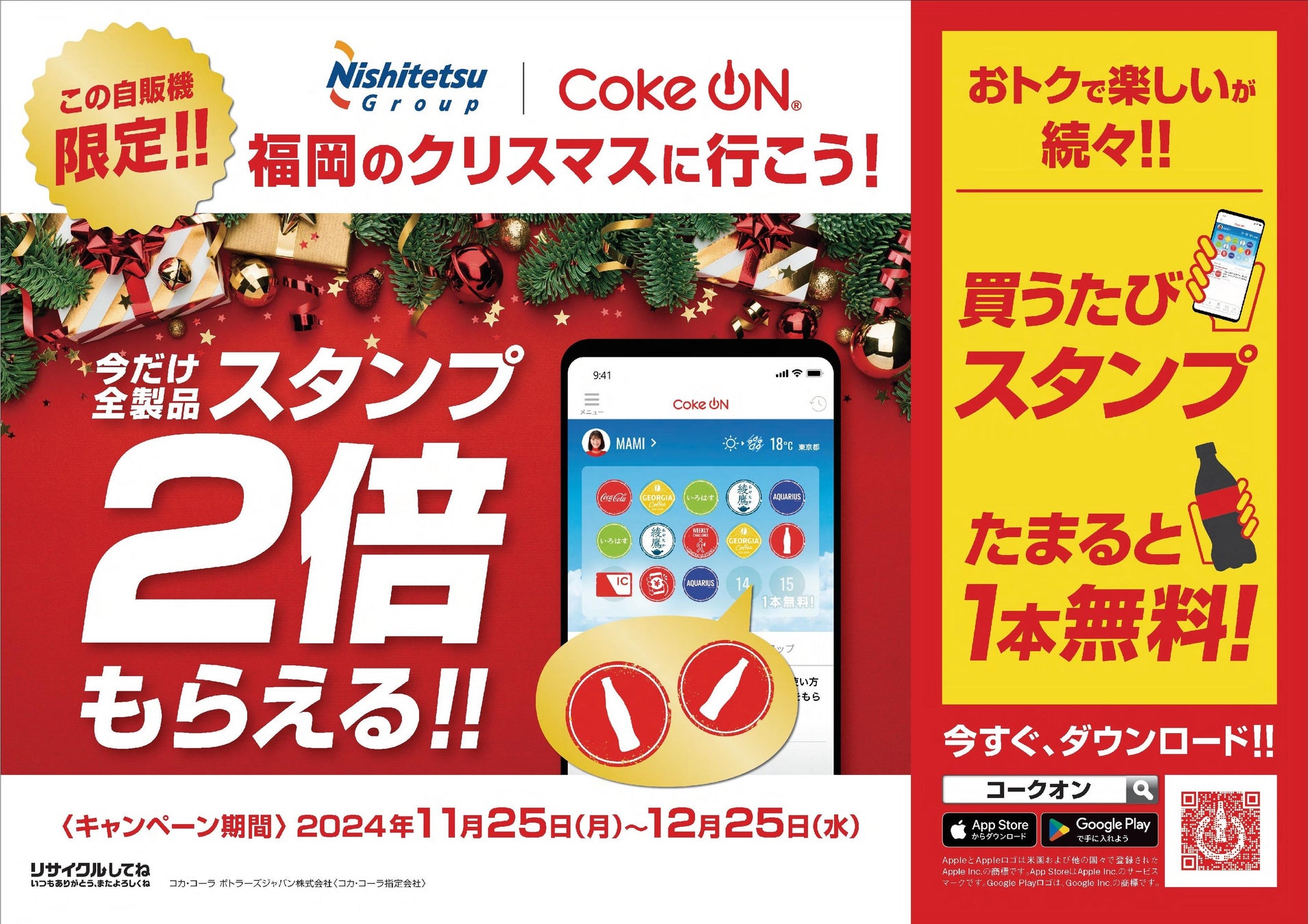 期間中、対象の自動販売機にて「クリスマスWスタンプキャンペーン」を実施いたします!