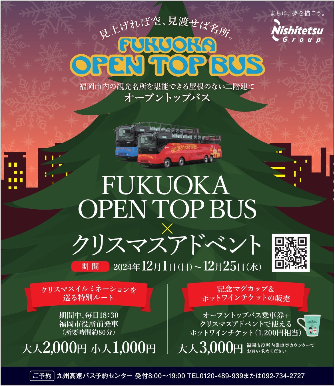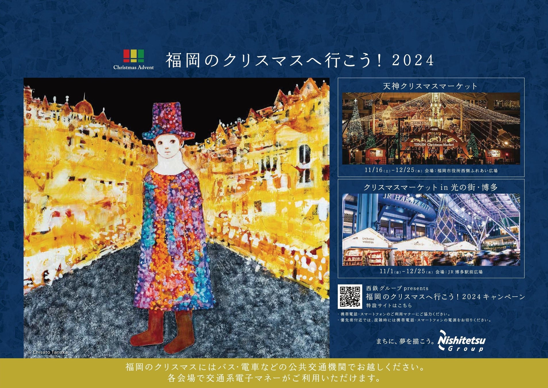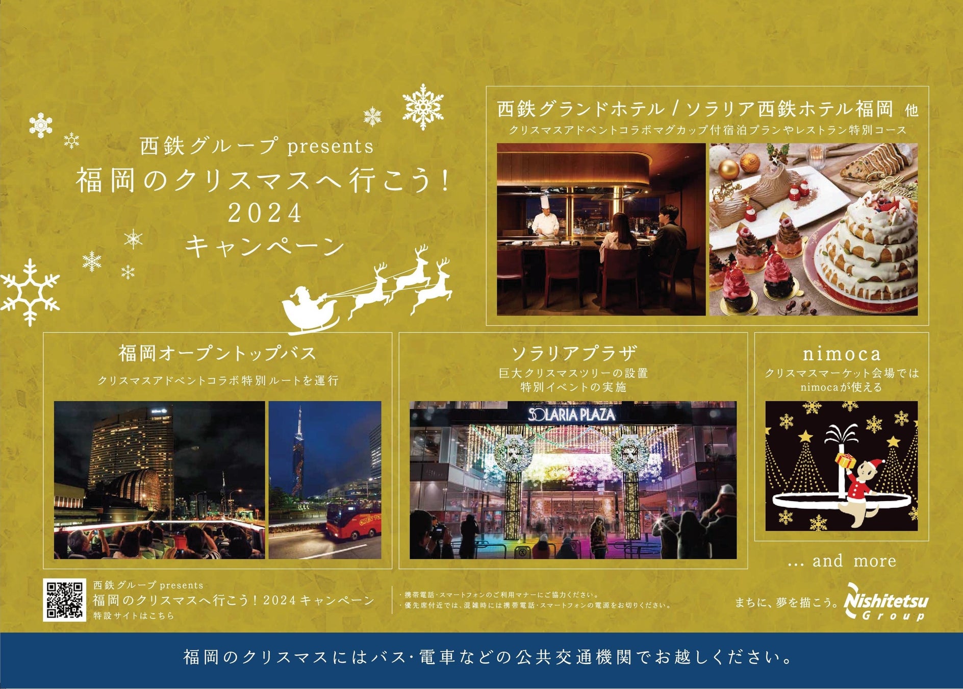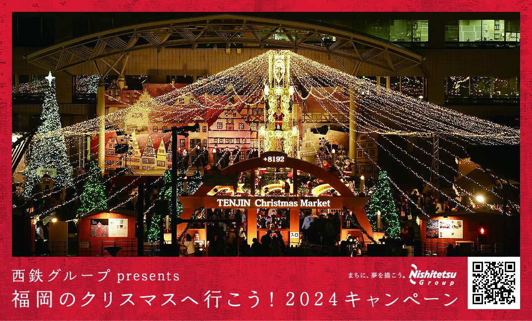 西鉄グループでは、11月15日(金)から12月25日(水)の期間中、「福岡のクリスマスへ行こう!2024」キャンペーンを実施します。「クリスマスアドベント※」と連動した商品・サービスをお客さまに提供し、西鉄グループ内外の企業連携を通して観光プロモーションを行うなど、クリスマスでにぎわうまちをさらに盛り上げ、福岡県内外からの観光需要創出に取り組みます。