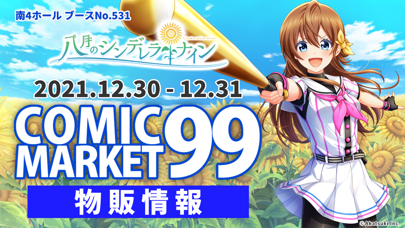株式会社アカツキ(本社:東京都品川区、代表取締役CEO:香田哲朗、以下「アカツキ」)は、2021年12月30日(木)〜31日(金)まで東京ビックサイトにて開催されるコミックマーケット99に出展する、企業ブース「アカツキ」(東京ビッグサイト 南4ホール ブースNo.531)にて販売する『八月のシンデレラナイン』の物販情報を公開したことをお知らせいたします。