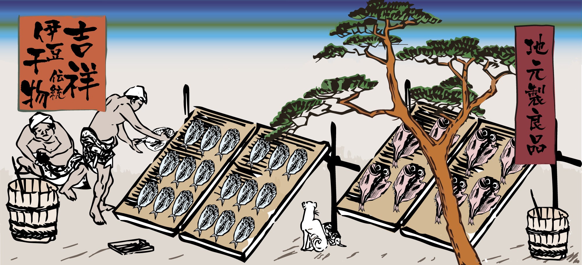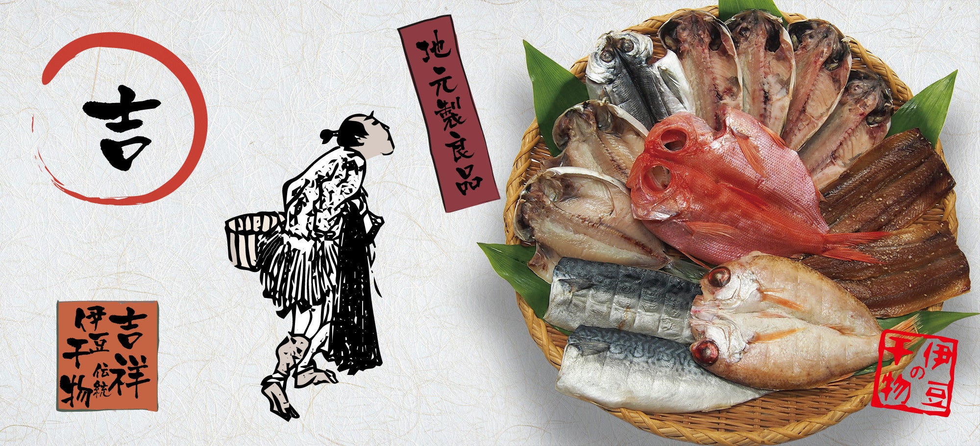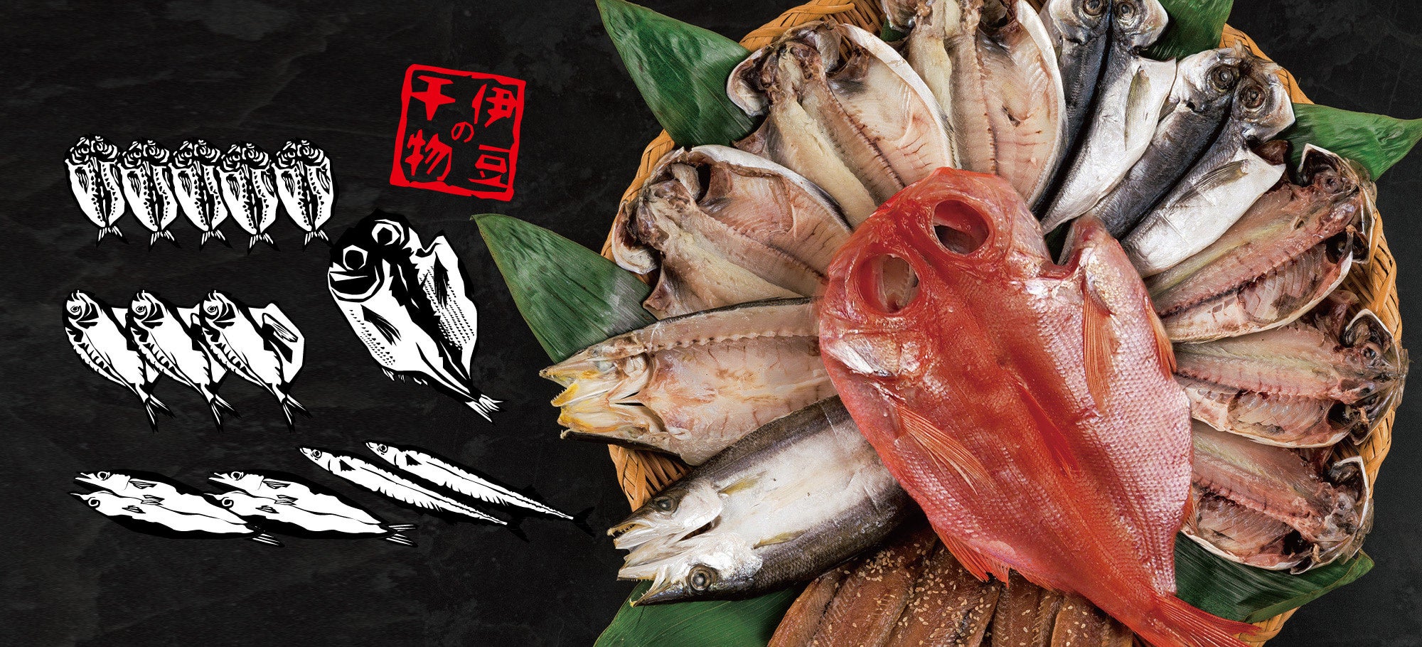 金目鯛、真アジ、かますetc.伊豆の美味しい干物を揃えました。